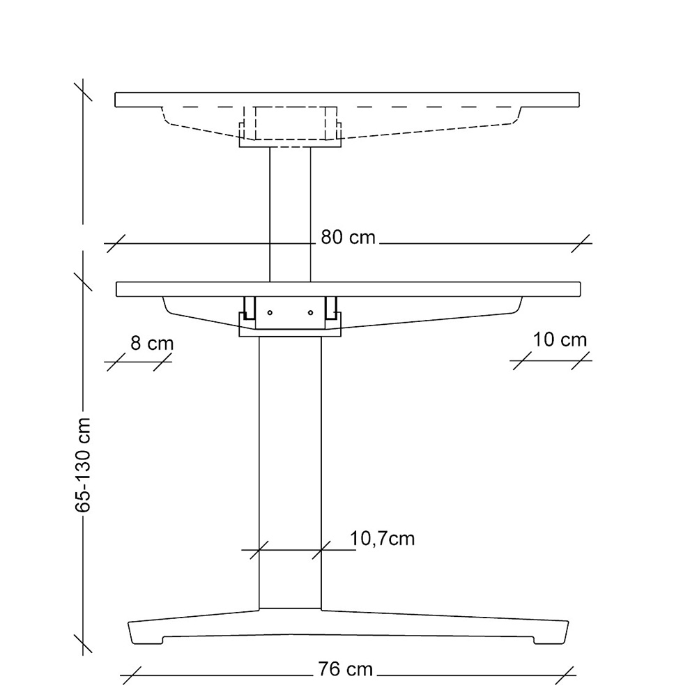 - Arbeitshöhe: Stufenlos verstellbar von 65 bis 130 cm