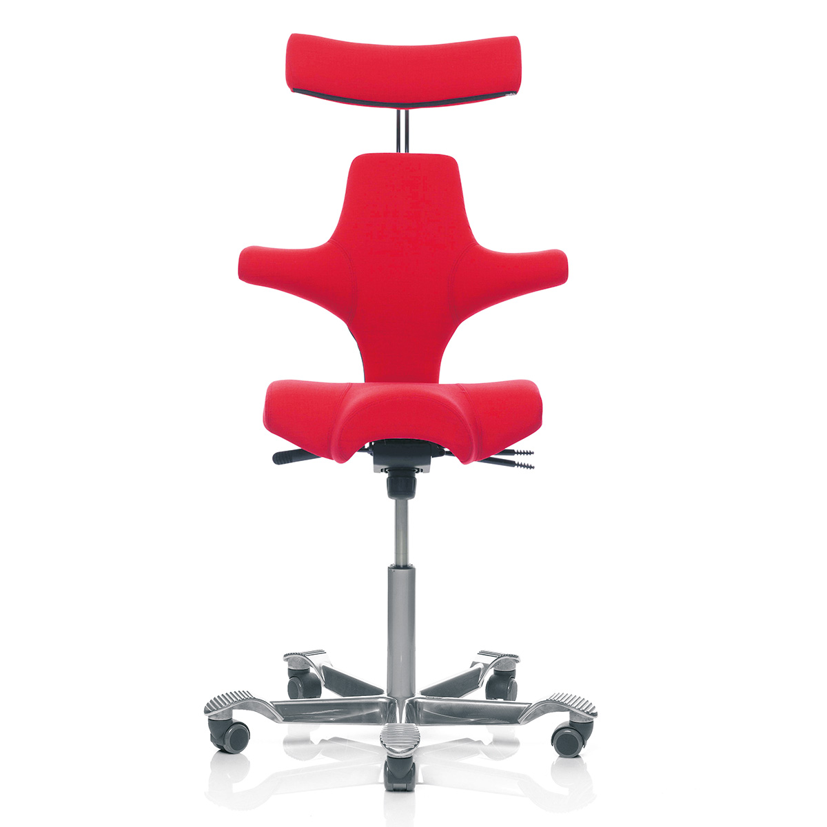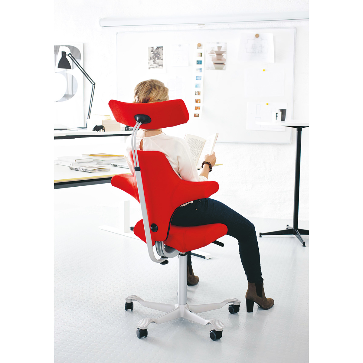 Wem der Sattelsitz des HAG Capisco 8106 nicht gefällt, der findet bei diesem Modell alle ergonomischen Eigenschaften des HAG Capisco in Verbindung mit einem normalen Flachsitz vereint. Das Modell 8126 bietet alle ergonomischen Eigenschaften der klassischen Capisco-Modelle, gleichzeitig jedoch auch das normale Sitzgefühl eines Standard-Bürodrehstuhls. Die Feder des HAG Capisco ist in drei Höhen erhältlich, sodass sowohl normales Arbeiten im Sitzen als auch in einer nahezu stehenden Position ermöglicht wird. Durch unseren modernen Online-Konfigurator können Sie den HAG Capisco nach Ihren Wünschen farblich gestalten.HighlightsModerne Rückenlehne in Capisco-Form: Nutzen Sie sie in jeder erdenklichen SitzpositionAnsprechende Bezugsauswahl: Gestalten Sie HAG Capisco in Ihren Wunschfarben oder passend zu Ihrem Corporate DesignDrei verschiedene Gasfedern passend zu Ihrer Arbeitshöhe erhältlichNachhaltige Produktion bei HAG: Verwendung von 53 % recycletem Material aus Verbrauchs- und IndustrieabfällenAusstattungErgonomischer FlachsitzRückenlehne in Capisco-Form, passt sich jeder Sitzhaltung anHöhenverstellungSitztiefenverstellungEinstellung der RückenlehnenhöheJustierung des rückwärtigen Neigungswiderstandes sowie ArretierungVerfügbar in verschiedenen Stoffen und Bezugsfarben der HAG-KollektionHochwertiges Kunststoff- oder Aluminium-Fußkreuz in schwarz, silber, weiß oder poliertMit dem optionalen HAG StepUp lässt sich der HAG Capisco um zwei zusätzliche Ebenen für das Aufstellen der Füße erweiternOptionaler HAG Footring ermöglicht eine Variation der Höhe und Bewegungsfreiheit für die FüßeAbmessungenSitzhöhe bei 150 mm-Gasfeder: 408 - 540 mm (für kleinere Personen geeignet) Sitzhöhe bei 200 mm-Gasfeder: 470 - 655 mm (Standard, normaler Verstellbereich) Sitzhöhe bei 265 mm-Gasfeder: 555 - 810 mm (für Stehtische geeignet)Rückenlehnenhöhe: 460 mmSitztiefe: 340 - 420 mmSitzbreite: 470 mmMaximale Stuhlbreite: 595 mmDurchmesser des Fußkreuzes: 730 mmGewicht: 13,5 kg