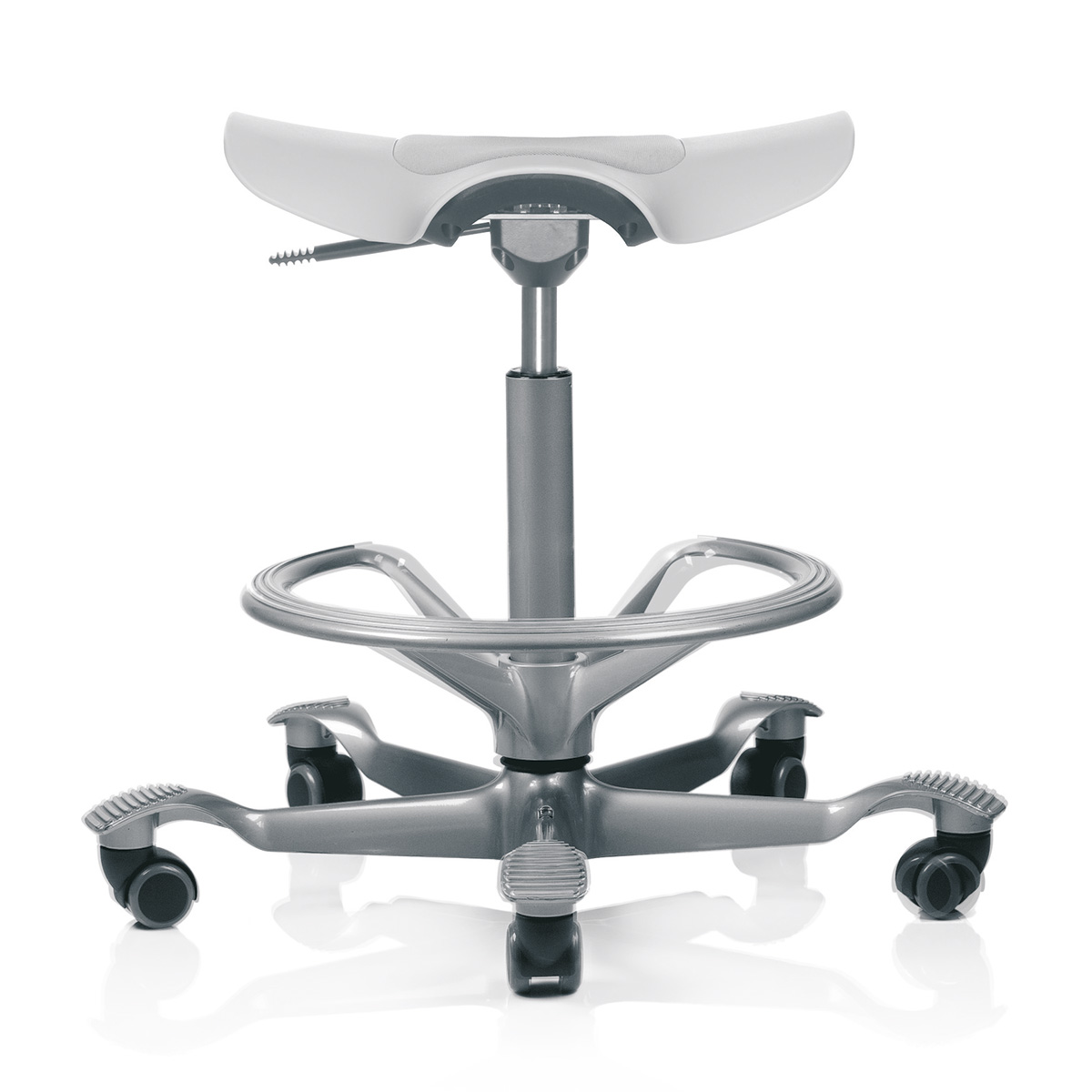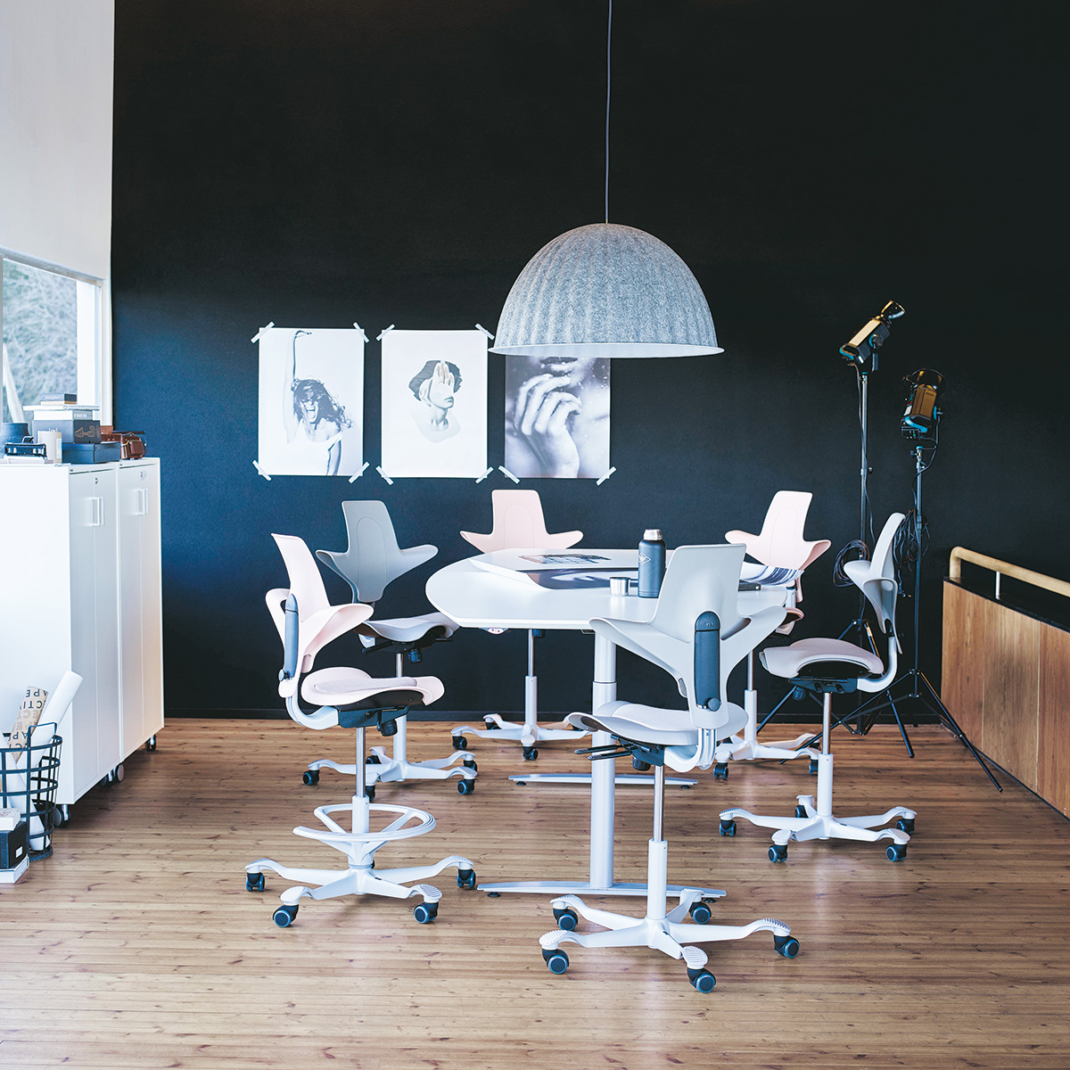 Das Motto hinter dem HAG Capisco: Physische Fitness durch ergonomische Finesse. Der HAG Capisco 8105 verbindet die ergonomischen Sitzeigenschaften der Capisco-Reihe mit den angenehmen Eigenschaften eines Sitzhockers: Maximale Flexibilität in jedem Job. Der Arbeitsstuhl eignet sich gleichermaßen für Tätigkeiten in gebeugter Sitzhaltung, als auch für spontane Teammeetings in angenehmer Wohlfühlatmosphäre. Nutzen Sie unseren modernen Online-Konfigurator um Ihren HAG Capisco nach Ihren Wünschen zu gestalten. Produkthighlights HAG Capisco ohne Rückenlehne mit ergonomisch geformtem Sitz Einfache Pflege der Bezugsstoffe mit einer Polsterbürste oder einem Schwamm Einfache Demontage mit Standardwergzeugen HAG Capisco enthält 53 % Recycling-Material aus Verbrauchs- und Industrieabfällen HAG arbeitet mit einer niedrigen CO²-Bilanz Ausstattung Der Stuhl lässt sich mit allen Stoffen aus der HAG Standard- und Extended-Kollektion ausstatten Wahlweise Kunststoff- oder Aluminiumfußkreuz in verschiedenen Farben Optionale HAG StepUp-Ausstattung: Zwei zusätzliche Ebenen für das Aufstellen der Füße möglich Optionaler HAG Footring Abmessungen des HAG Capisco 8105 Sitzhockers Sitzhöhe bei 150 mm-Gasfeder: 380 - 515 mm (für kleinere Personen geeignet) Sitzhöhe bei 200 mm-Gasfeder: 445 - 630 mm (Standard, normaler Verstellbereich) Sitzhöhe bei 265 mm-Gasfeder: 530 - 790 mm (für Stehtische geeignet) Sitzbreite: 470 mm Durchmesser Fußkreuz: 730 mm Gewicht: 7,5 kg