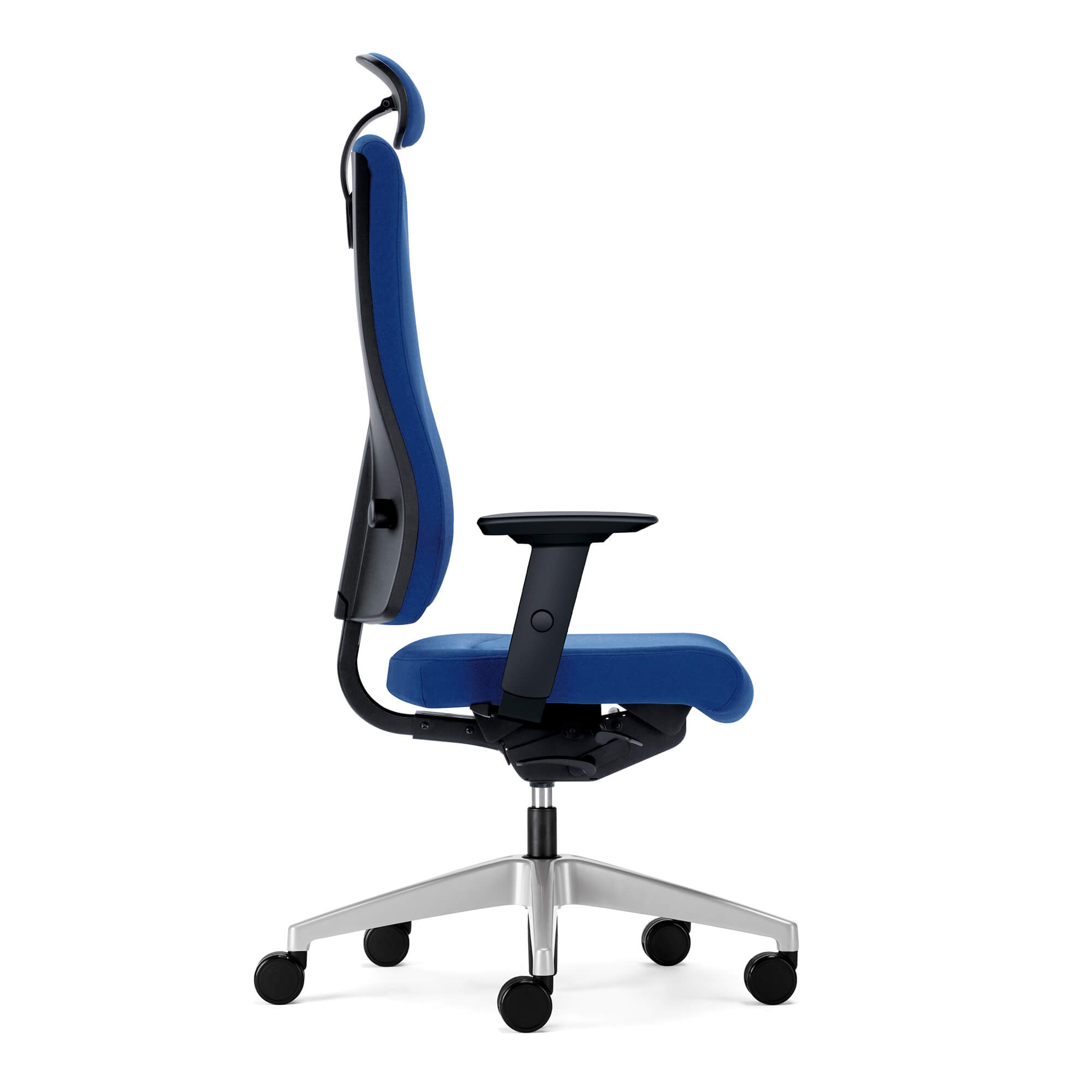 Die Bürostühle der Interstuhl GOAL-Serie begeistern seit vielen Jahren ihre Nutzer. Das atmungsaktive Polster sorgt für einen angenehme Luftzirkulation. Die umfangreichen Features sind über die optimal positionierten Bedienhebel perfekt einstellbar. Der Interstuhl GOAL Bürostuhl ist in vielen verschiedenen Varianten erhältlich. Er lässt sich mit einer niedrigen, mittelhohen oder hohen Rückenlehne ausstatten. Das Modell 322G von Interstuhl ist bereits von Haus aus mit der hohen Rückenlehne und einer Kopfstütze für maximalen Komfort ausgestattet. Der gesamte Stuhl ist mit Wunschbezug- und Farbe gepolstert. Der etwas breitere Sitz des 322G im Vergleich zu anderen Modellen der GOAL-Bürostuhl-Serie erreicht nahezu ein "Sofa"-Gefühl.