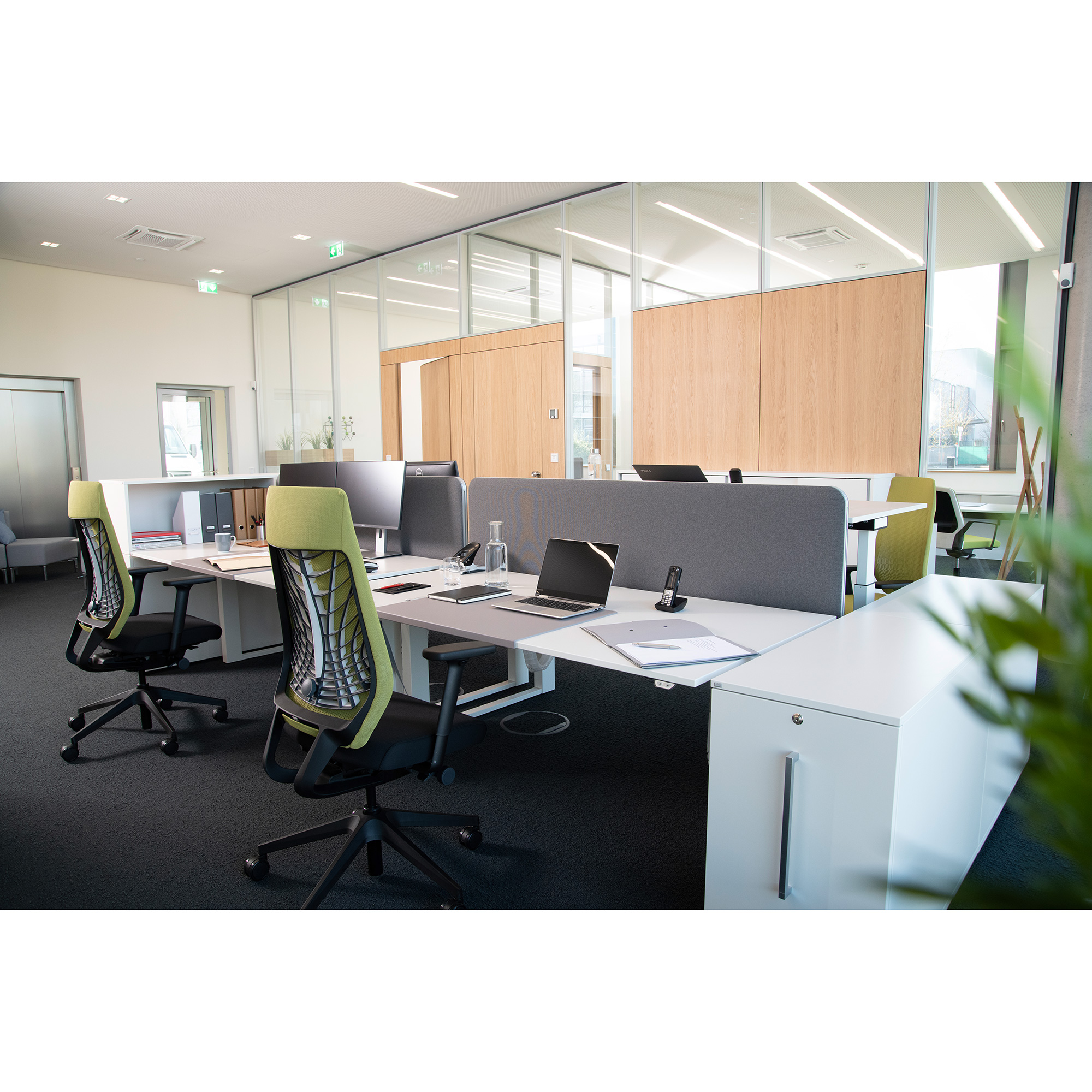 Auffällig? Natürlich! Die stylische Interstuhl FlexGrid-Rückenlehne macht jedes Home Office zum Hingucker. Angelehnt an das Skelett das Menschen wirkt FlexGrid optisch gleichzeitig filigran und doch extrem stark. Der Interstuhl Joyce mit FlexGrid ist aber nicht nur optisch ein Highlight. Der FlexGrid-Rücken erfüllt auch die Funktion einer Lordosenstütze und lässt sich in der Tiefe und Höhe verstellen. FlexGrid sorgt jederzeit für eine aufrechte Sitzposition des Nutzers mit einem angenehmen Gegendruck im Lendenbereich. Verleihen Sie mit einem passenden Sitzbezug - er muss selbstverständlich nicht rot sein - Ihrem Joyce einen individuellen Touch. Verschiedene Stoffarten sorgen außerdem für eine tolle Haptik. Alle Interstuhl-Stoffe sind für die Anforderungen eines harten Bürostuhl-Arbeitstages bestens gerüstet. Neben den Bezugsfarben lassen sich auch die Kunststoffteile in zwei modernen Farben gestalten: Schwarz oder hellgrau - jeweils durchgefärbt, sodass die Farbe selbst bei tiefen Kratzern erhalten bleibt. Der angenehm luftige Netzrücken sorgt für die perfekte Luftzirkulation und verhindert unangenehmes Schwitzen. Gestalten Sie noch heute Ihren Interstuhl JOYCEis3 JC216 Bürostuhl mit FlexGrid-Rücken in unserem intuitiven 3D-Konfigurator. Sind noch Fragen offen? Unsere Bürostuhl-Experten beraten Sie gerne - telefonisch und per E-Mail. Ausstattung des Interstuhl JOYCEis3 JC216 Jeder Interstuhl JOYCEis3 lässt sich selbstverständlich stufenlos in der Höhe verstellen, die normale Sitzhöhe beträgt dabei 420 bis 530 mm Weitere, höhere und niedrigere Sitzhöhen durch Auswahl anderer Stuhlsäulen verfügbar Stufenlose Gewichtsregulierung von 45 bis 120 kg Integrierte FlexGrid-Lordosenstütze, tiefen- und höhenverstellbar für angenehmen Gegendruck im Lendenbereich Kunststoffteile durchgefärbt in hellgrau oder schwarz Alle Modelle 3D-konfigurierbar Mittelhohe Rückenlehne mit Netzrücken, verhindert Schwitzen durch stetige Luftzirkulation, viele verschiedene Netzfarben zur Auswahl Individuelle Auswahl der Bezugsstoffe- und Farben aus der gesamten Interstuhl-Stoffkollektion Optionale Armlehnen, welche in 2D (Höhe und Breite), 3D (zusätzlich Tiefe) oder 4D (zusätzlich schwenkbar) verstellbar sind Weiche Armauflage der Armlehnen Optionale Sitzneigeverstellung um bis zu +4,9° Erprobte und bewährte Interstuhl Synchronmechanik für eine ergonomische Sitzhaltung in jeder Position Sämtliche Materialien sind recyclebar, Interstuhl sorgt für eine jederzeit nachhaltige Produktion Wählen Sie weiche Rollen für alle harten Böden oder harte Rollen, wenn Sie den Bürostuhl auf einem Teppichboden einsetzen Abmessungen Gesamthöhe: 1175 mm Höhe der Rückenlehne: 600 mm Sitzhöhe mit Standard-Stuhlsäule: 420 - 530 mm Sitzhöhe mit hoher Stuhlsäule für große Personen: 430 - 580 mm Sitzhöhe mit niedriger Stuhlsäule für kleine Personen: 400 - 510 mm Sitzbreite: 500 mm Sitztiefe: 460 mm (mit optionaler Sitztiefenverstellung um 60 mm verstellbar) Gesamtbreite mit Armlehnen: 725 mm Gesamttiefe: 630 mm Gewicht: 15,7 kg Weitere Modelle der Interstuhl JOYCEis3-Serie finden Sie unten in der Produktübersicht oder über unsere Artikelsuche.
