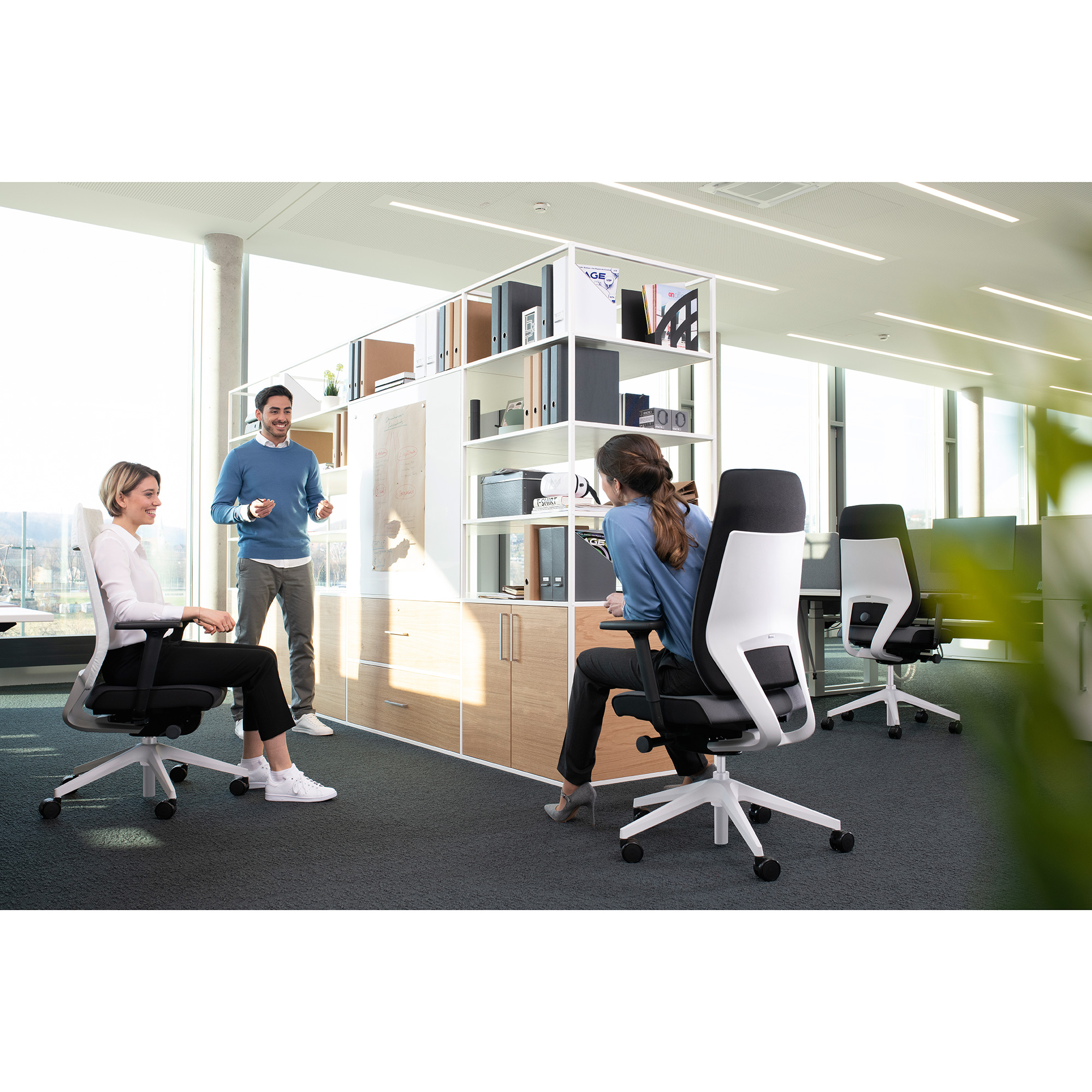 - Erprobte und bewährte Interstuhl Synchronmechanik für eine ergonomische Sitzhaltung in jeder Position