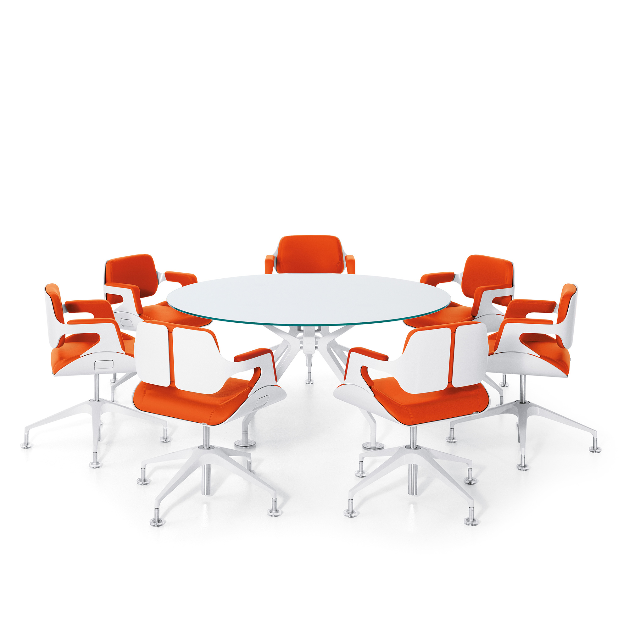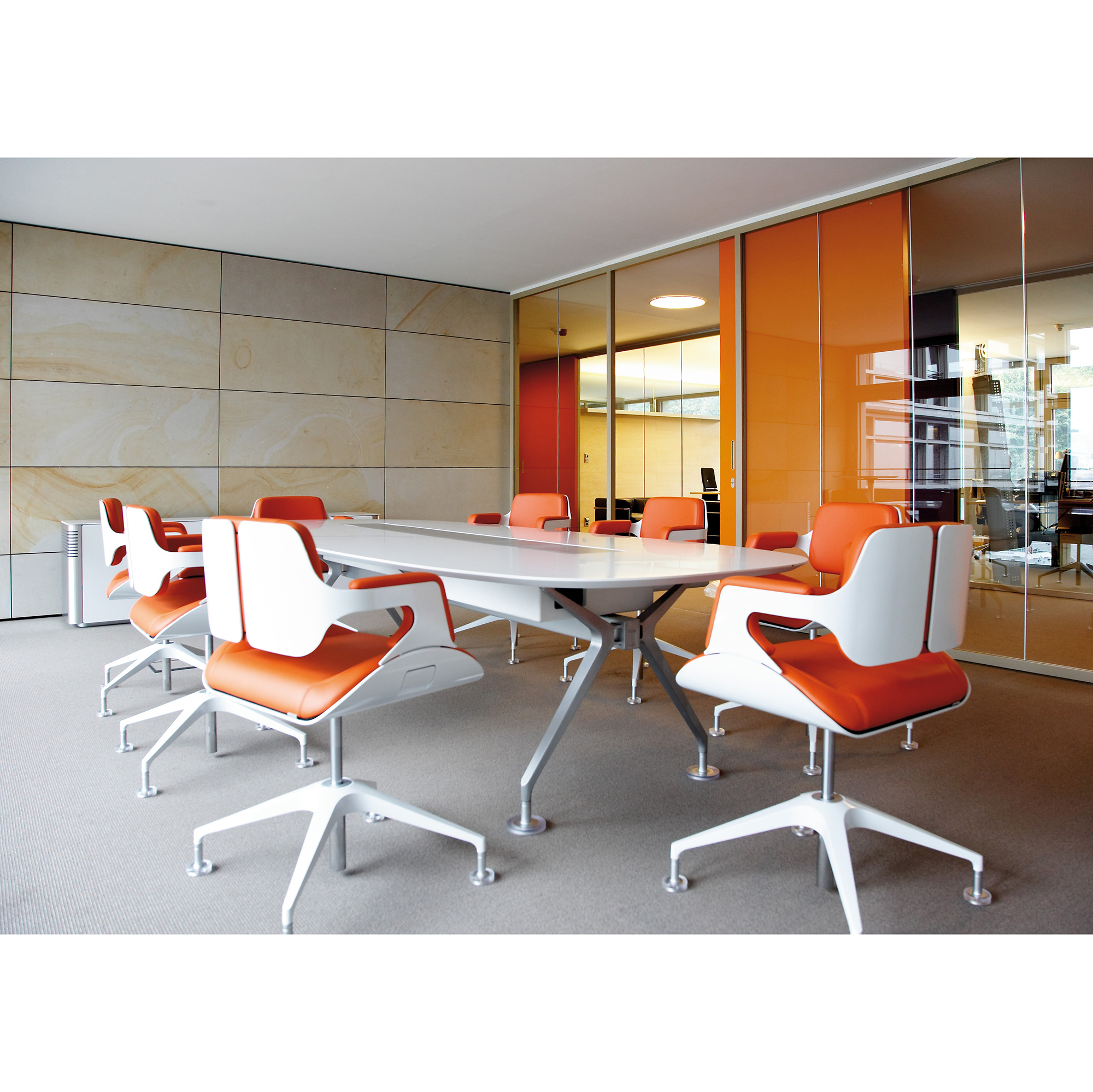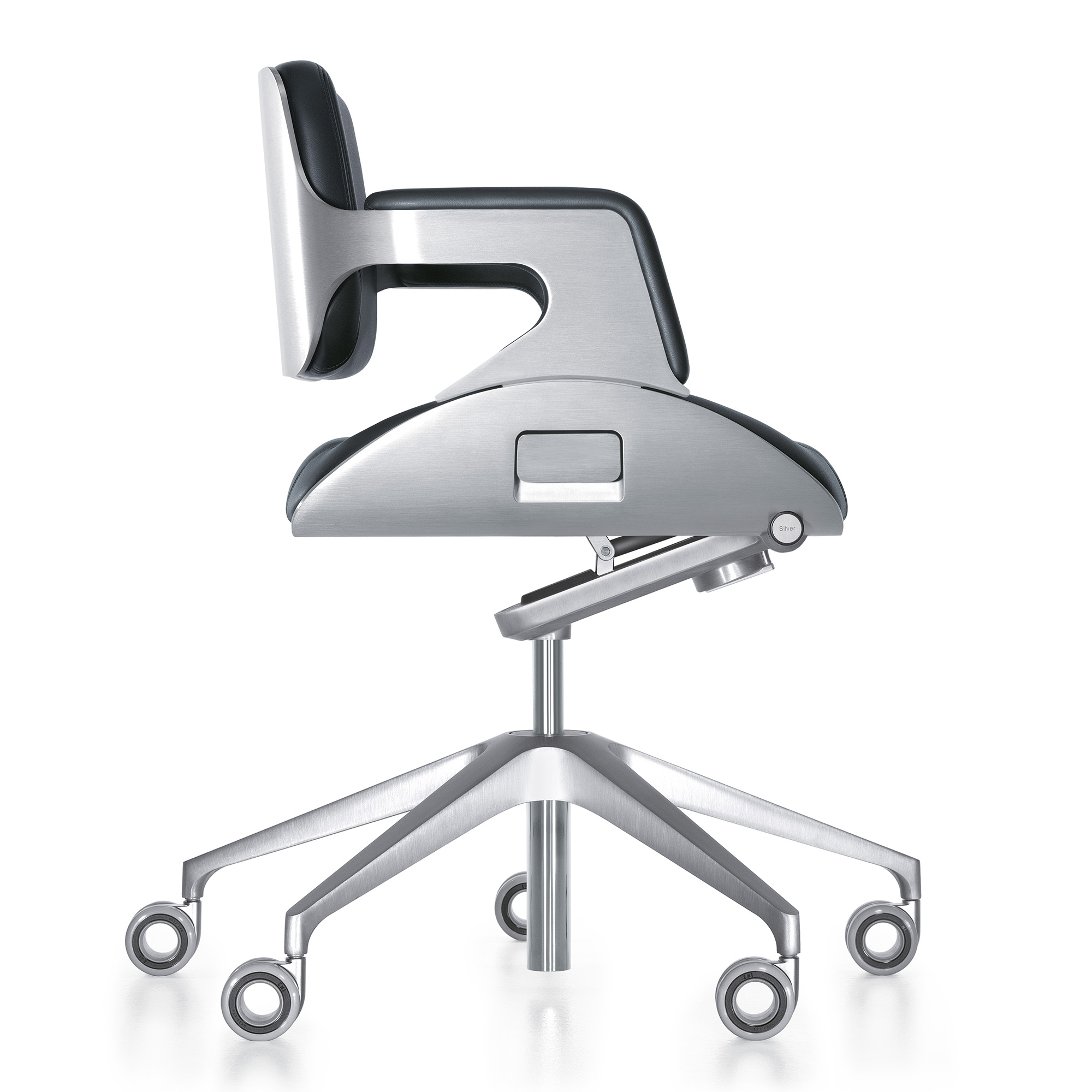 Interstuhl Silver 362S - der Chefbüro-Klassiker von Interstuhl. Designer: Hadi Teherani. Der Silver 362S besticht durch Klarheit in der Gestaltung und die konsequente und kompromisslose Umsetzung der Design-Idee. Im Fokus stehen die Wertigkeit der verwendeten Materialien und Oberflächen. Der optionale Lederbezug rundet das präzise Design durch eine klare Aussage ab. Die präzise Formensprache des Interstuhl Silver 362S Bürostuhls für Chefbüros erzeugt ein eindeutiges Bild - markant und trotzdem ruhig. Präsent in jedem Raum - ob Chefbüro, Konferenzraum oder Privatbibliothek. Die Formen des Silver 362S erinnern an Elemente aus dem hochwertigen Fahrzeugbau. Die Integration der Sitzmechanik in die markante Sitzschale erzeugt ein nahtloses Exterieur. Der Interstuhl Silver 362S lässt sich mühelos einstellen - der in das nahtlose Design integrierte Hebel auf der rechten Seite sorgt für die Einstellung der Sitzhöhe. Der Hebel auf der linken Seite hingegen arretiert die Rückenlehne in Ihrer gewünschten Sitzposition. Die elegant verstecke Kurbel unter der Sitzfläche bestimmt den Gegendruck der Rückenlehne mit wenigen Handgriffen passend zu Ihrem Körpergewicht. Konfigurieren Sie sich noch heute Ihren persönlichen Interstuhl Silver 362S in unserem 3D-Konfigurator.Ausstattung des Interstuhl Silver 362SHohe Rückenlehne mit integrierter KopfstützeSitz, Rücken und Armlehnen sind gepolstert, die Stoffe lassen sich sowohl in der Art der Stoffe als auch der Farbe frei wählenSynchronmechanik, welche Sitz und Rücken synchron bewegen lässt, die Rückenlehne lässt sich arretieren, der Gegendruck lässt sich per Kurbel unter dem Sitz einstellenGeeignet für personen von 50 bis 120 kgWahlweise weiche Rollen für alle harten Böden oder harte Rollen für TeppichbodenHaltbares Aluminiumfußkreuz, farblich passend zu allen weiteren Aluminiumteilen des Interstuhl Silver BürostuhlsMetallteile wahlweise pulverbeschichtet weiß oder gebürstet silber, glänzendUmweltfreundlicher Materialeinsatz: Sämtliche Materialien sind recyclebarAnsprechendes und zeitloses Design, ein Aluchair-KlassikerSofort einsatzbereit - der Stuhl wird fertig montiert bei Ihnen angeliefertAbmessungen des Interstuhl Silver 362SHöhe der Rückenlehne: 800 mmSitzhöhe: 410 - 510 mmSitzbreite: 480 mmSitztiefe: 480 mmGesamthöhe: 1320 mmGesamtbreite: 580 mmGesamttiefe: 720 mmGewicht: 40 kgHaben Sie weitere Fragen zu den Ausstattungsmerkmalen des Interstuhl Silver 362S Bürostuhls? Unsere Ergonomie-Experten beraten Sie gerne.