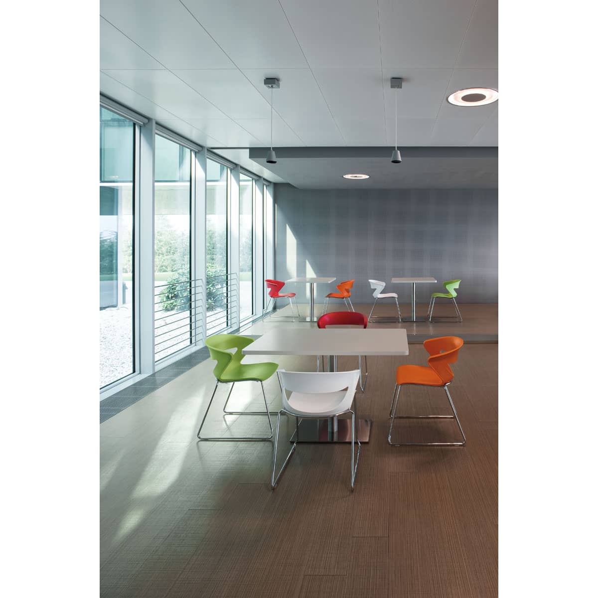 - Kufengestell lackiert in den Farben schwarz, Aluminium oder weiß, gegen Aufpreis auch verchromt erhältlich