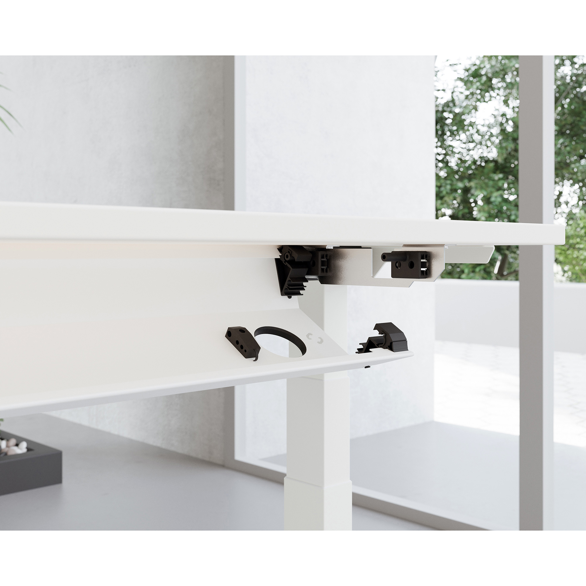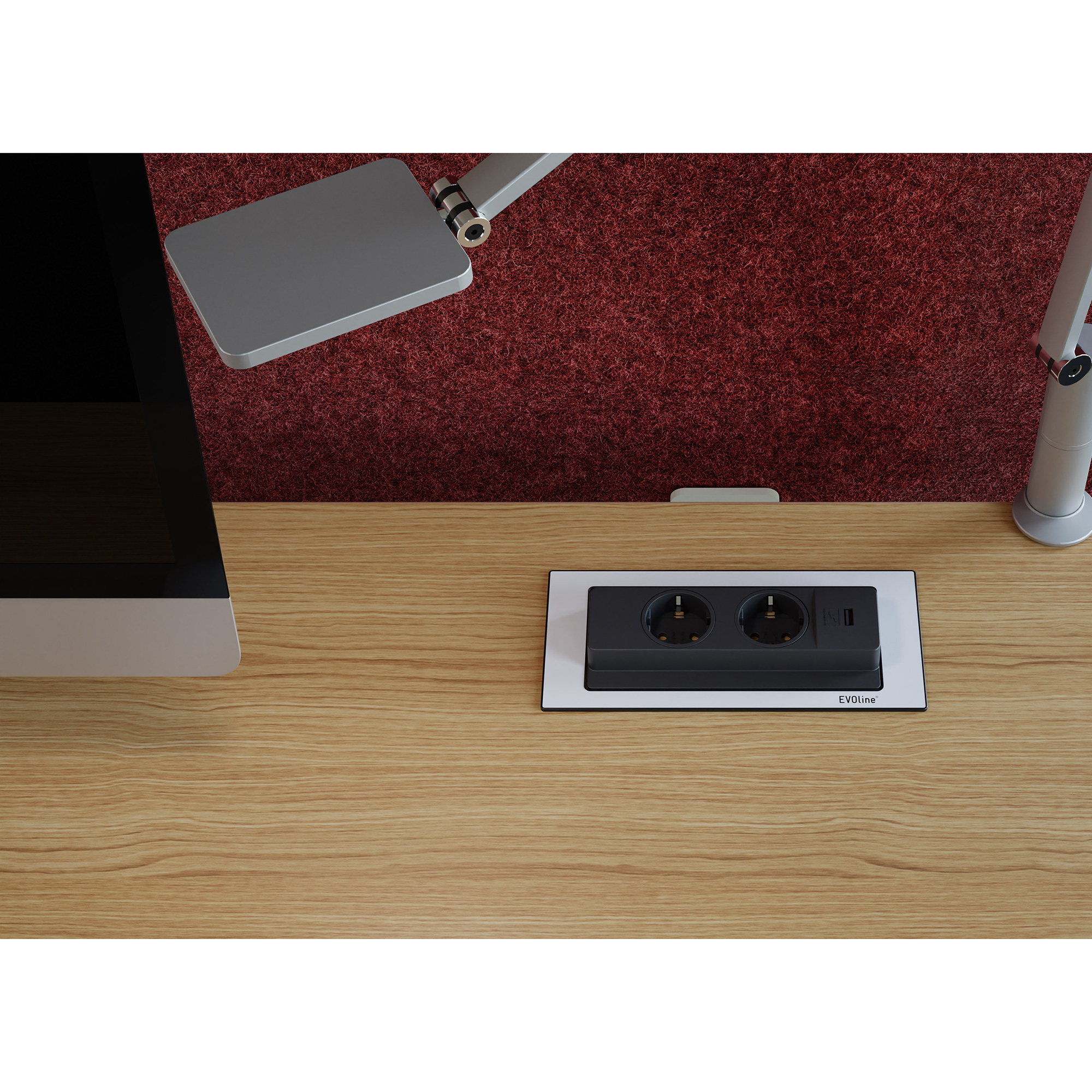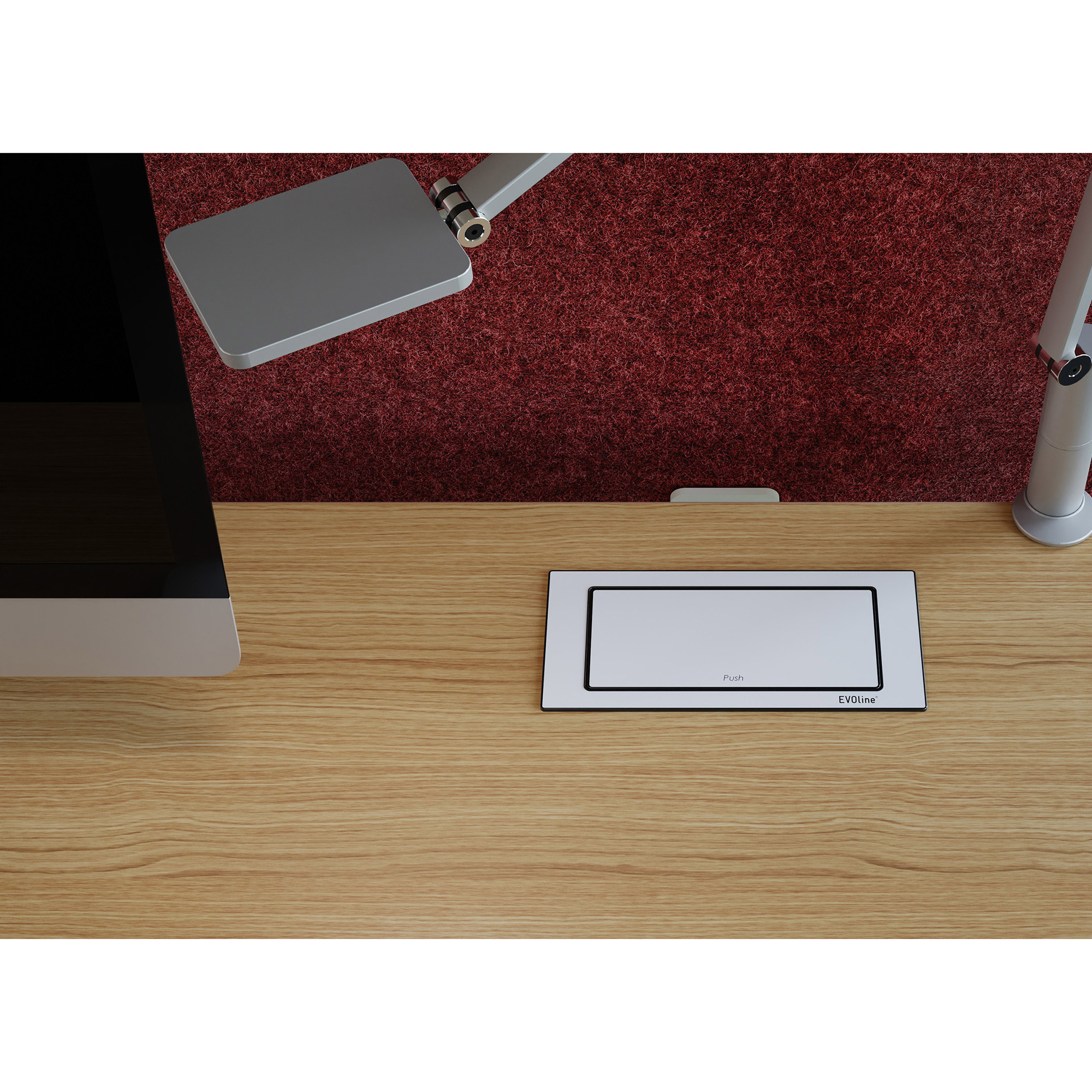 - Gegen Aufpreis lassen sich direkt ab Werk Kabeldurchlassdosen integrieren, so lassen sich Verkabelungen schnell und elegant durch die Tischplatte führen