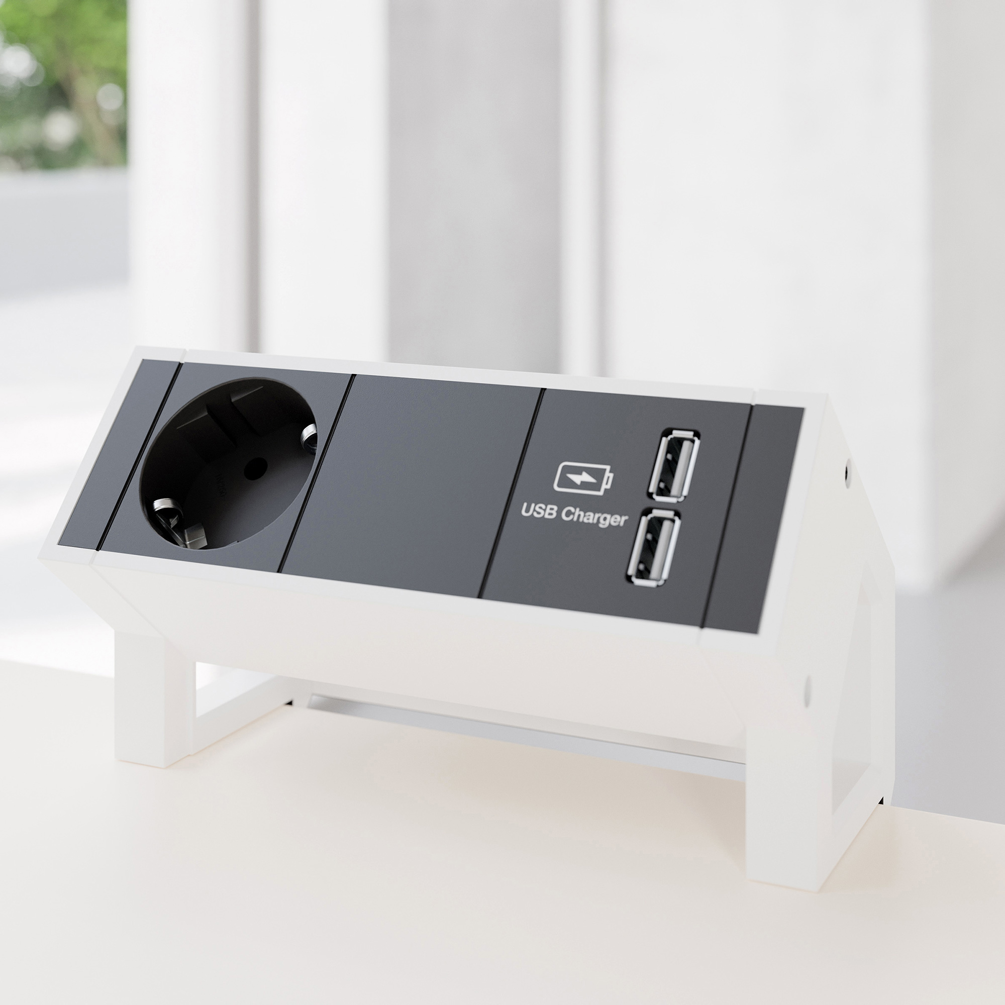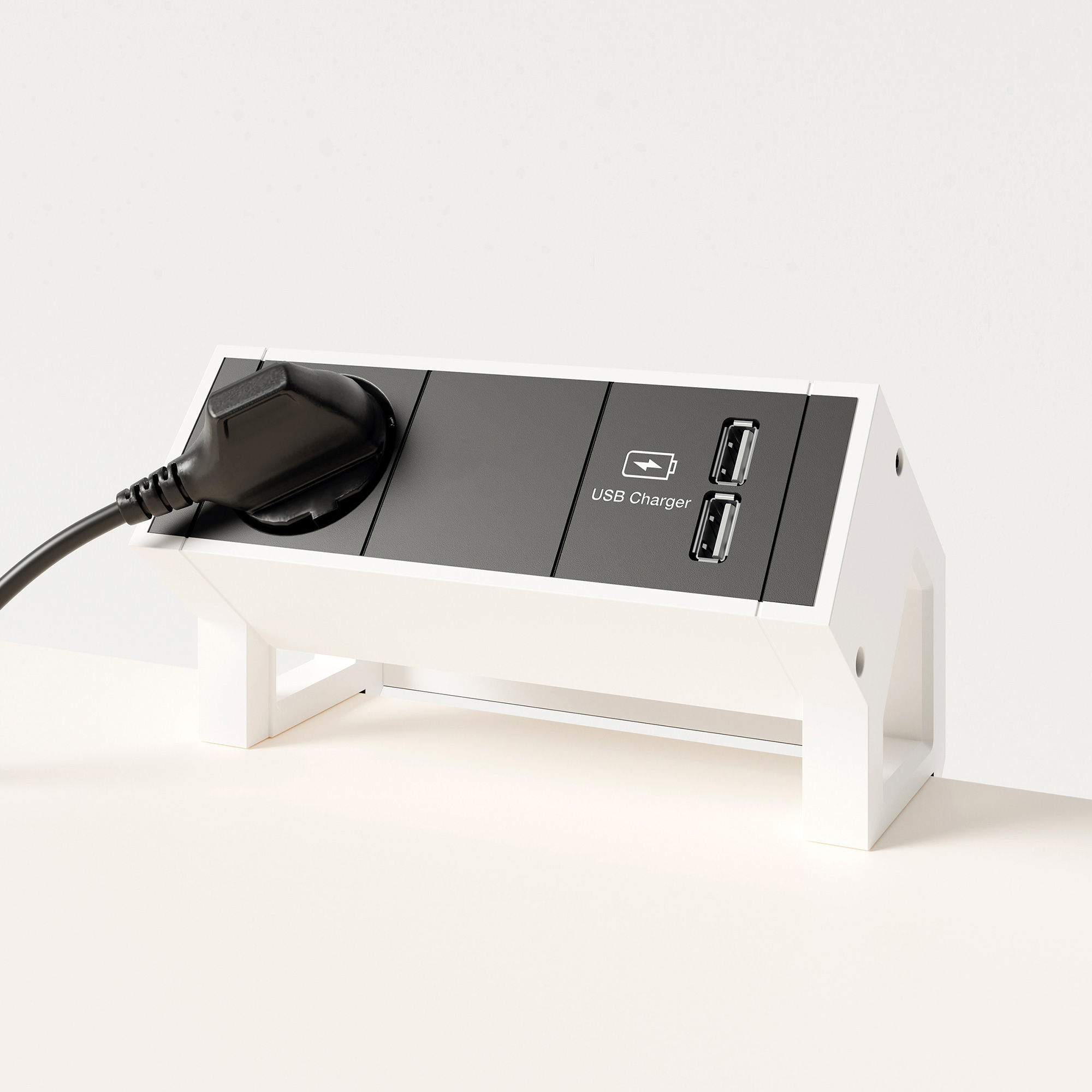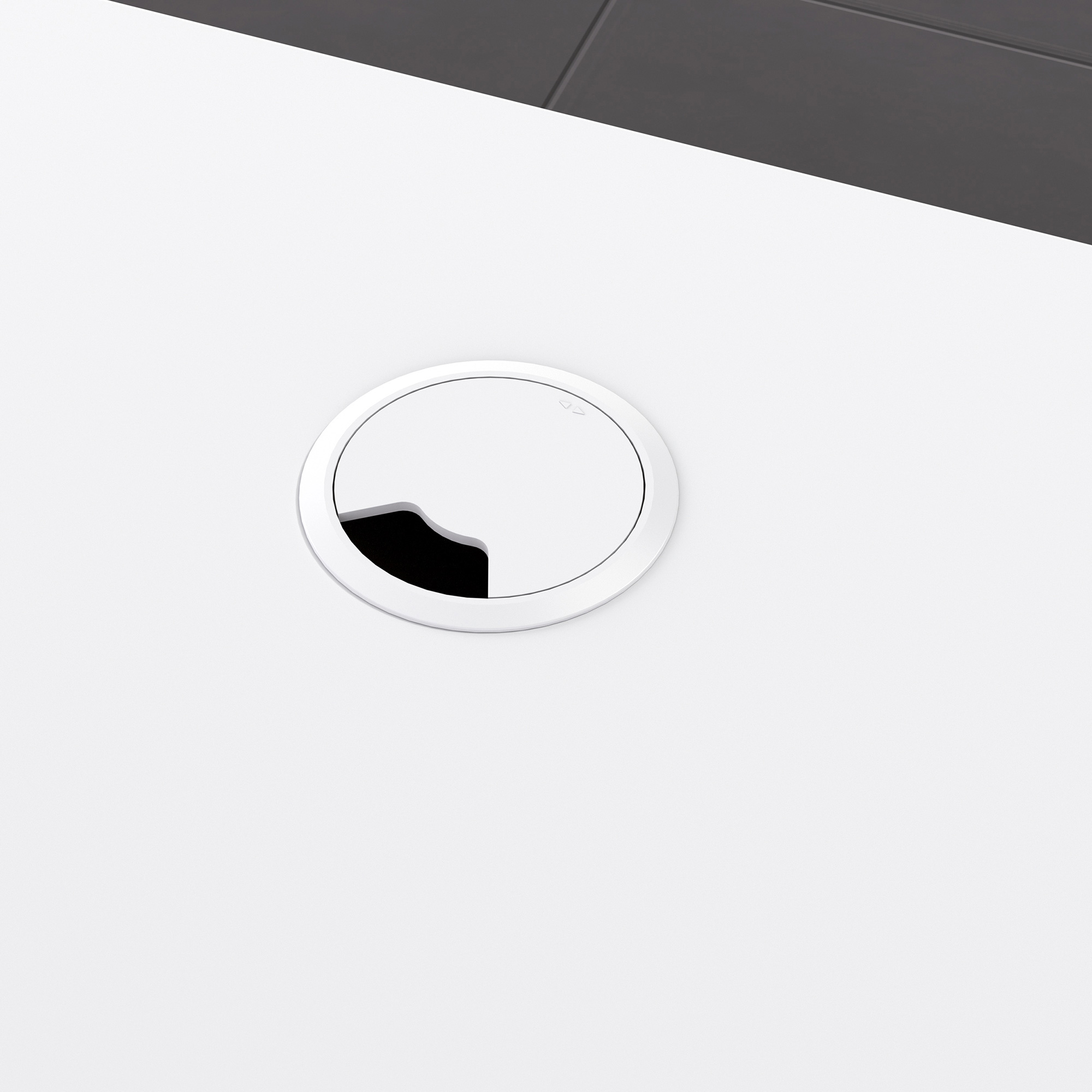 - Gegen Aufpreis lassen sich direkt ab Werk Kabeldurchlassdosen integrieren, so lassen sich Verkabelungen schnell und elegant durch die Tischplatte führen
