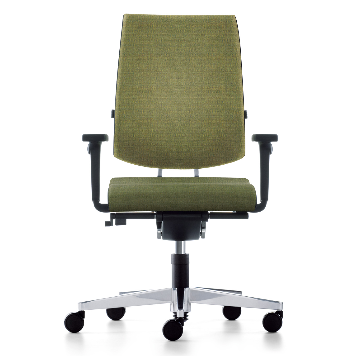 Dynamisches Sitzen mit dem Sedus Black Dot 24 Bürodrehstuhl. Das Modell Black Dot 24 sorgt durch sein dickeres und breiteres Sitzpolster sowie die verstärkten Federn und Similarmechanik für ein angenehmes Sitzen über lange Zeiträume. Und das alles für ein geeignetes Nutzergewicht bis 150 Kilogramm. Die 4D verstellbaren Armlehnen ergänzen Black Dot 24 um die nötige Ergonomie als Leitwartenstuhl. Auch im Empfangsbereich spielt der Sedus Black Dot 24 seine Stärken aus - verschiedene Mitarbeiter können den Stuhl 24 Stunden täglich in Anspruch nehmen ohne Abstriche an Ergonomie, Abnutzung oder Qualität.AusstattungsmerkmaleGeeignet für den Einsatz rund um die UhrMaximales Nutzergewicht von 150 kgHoher Rücken, wahlweise membranbespannt oder vollgepolstertVerstärkte Federn für größtmögliche HaltbarkeitIntegrierter SchiebesitzOptional mit 4D-Armlehnen mit Softtouchauflage und poliertem AluminiumträgerSedo-Lift-Mechanik sorgt auch in der untersten Position für eine angenehme SitztiefenfederungIntegrierte Lordosenstütze für einen angenehmen Komfort im Rückenbereich, höhenverstellbar um 80 mmWahlweise auch mit Nackenstütze, höhenverstellbar und schwenkbarMetallteile und Fußkreuz in schwarz, weißaluminium oder poliert erhältlichSitz und Rücken lassen sich in verschiedenen Farben und Bezügen gestaltenAttraktives Preis-/Leistungsverhältnis für einen LeitwartenstuhlAbmessungenSitzhöhe: 420 - 520 mmBreite: 690 mmSitzbreite: 495 mmSitztiefe: 420 - 480 mmHöhe der Armlehnen: 200 - 310 mmHöhe der Rückenlehne: 620 mmKonfigurieren Sie noch heute Ihren Sedus Black Dot 24 Bürodrehstuhl in unserem 3D-Konfigurator.