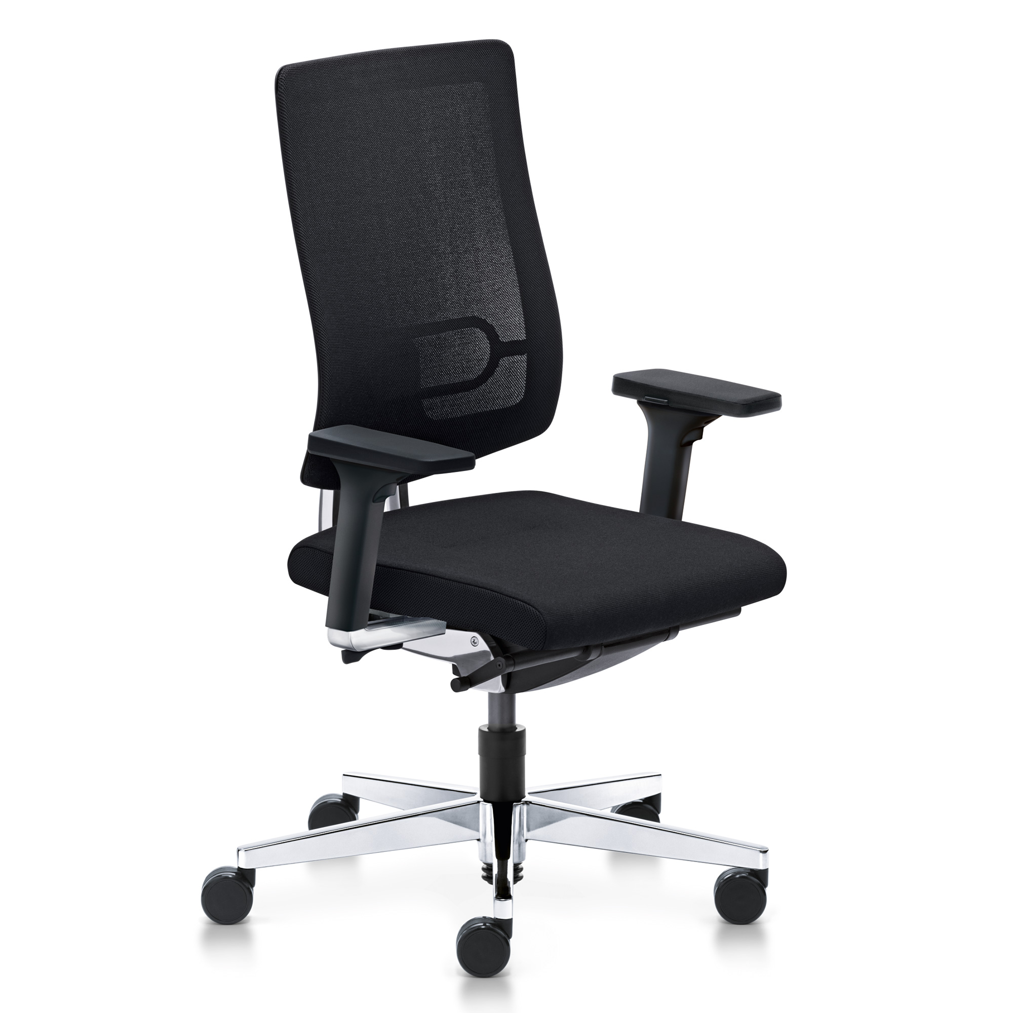 Dynamisches Sitzen mit dem Sedus Black Dot 24 Bürodrehstuhl. Das Modell Black Dot 24 sorgt durch sein dickeres und breiteres Sitzpolster sowie die verstärkten Federn und Similarmechanik für ein angenehmes Sitzen über lange Zeiträume. Und das alles für ein geeignetes Nutzergewicht bis 150 Kilogramm. Die 4D verstellbaren Armlehnen ergänzen Black Dot 24 um die nötige Ergonomie als Leitwartenstuhl. Auch im Empfangsbereich spielt der Sedus Black Dot 24 seine Stärken aus - verschiedene Mitarbeiter können den Stuhl 24 Stunden täglich in Anspruch nehmen ohne Abstriche an Ergonomie, Abnutzung oder Qualität.AusstattungsmerkmaleGeeignet für den Einsatz rund um die UhrMaximales Nutzergewicht von 150 kgHoher Rücken, wahlweise membranbespannt oder vollgepolstertVerstärkte Federn für größtmögliche HaltbarkeitIntegrierter SchiebesitzOptional mit 4D-Armlehnen mit Softtouchauflage und poliertem AluminiumträgerSedo-Lift-Mechanik sorgt auch in der untersten Position für eine angenehme SitztiefenfederungIntegrierte Lordosenstütze für einen angenehmen Komfort im Rückenbereich, höhenverstellbar um 80 mmWahlweise auch mit Nackenstütze, höhenverstellbar und schwenkbarMetallteile und Fußkreuz in schwarz, weißaluminium oder poliert erhältlichSitz und Rücken lassen sich in verschiedenen Farben und Bezügen gestaltenAttraktives Preis-/Leistungsverhältnis für einen LeitwartenstuhlAbmessungenSitzhöhe: 420 - 520 mmBreite: 690 mmSitzbreite: 495 mmSitztiefe: 420 - 480 mmHöhe der Armlehnen: 200 - 310 mmHöhe der Rückenlehne: 620 mmKonfigurieren Sie noch heute Ihren Sedus Black Dot 24 Bürodrehstuhl in unserem 3D-Konfigurator.