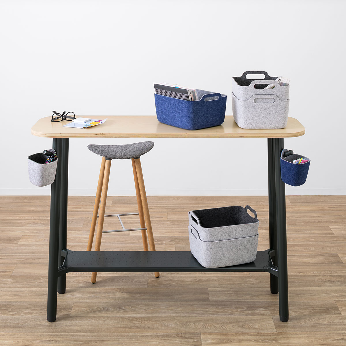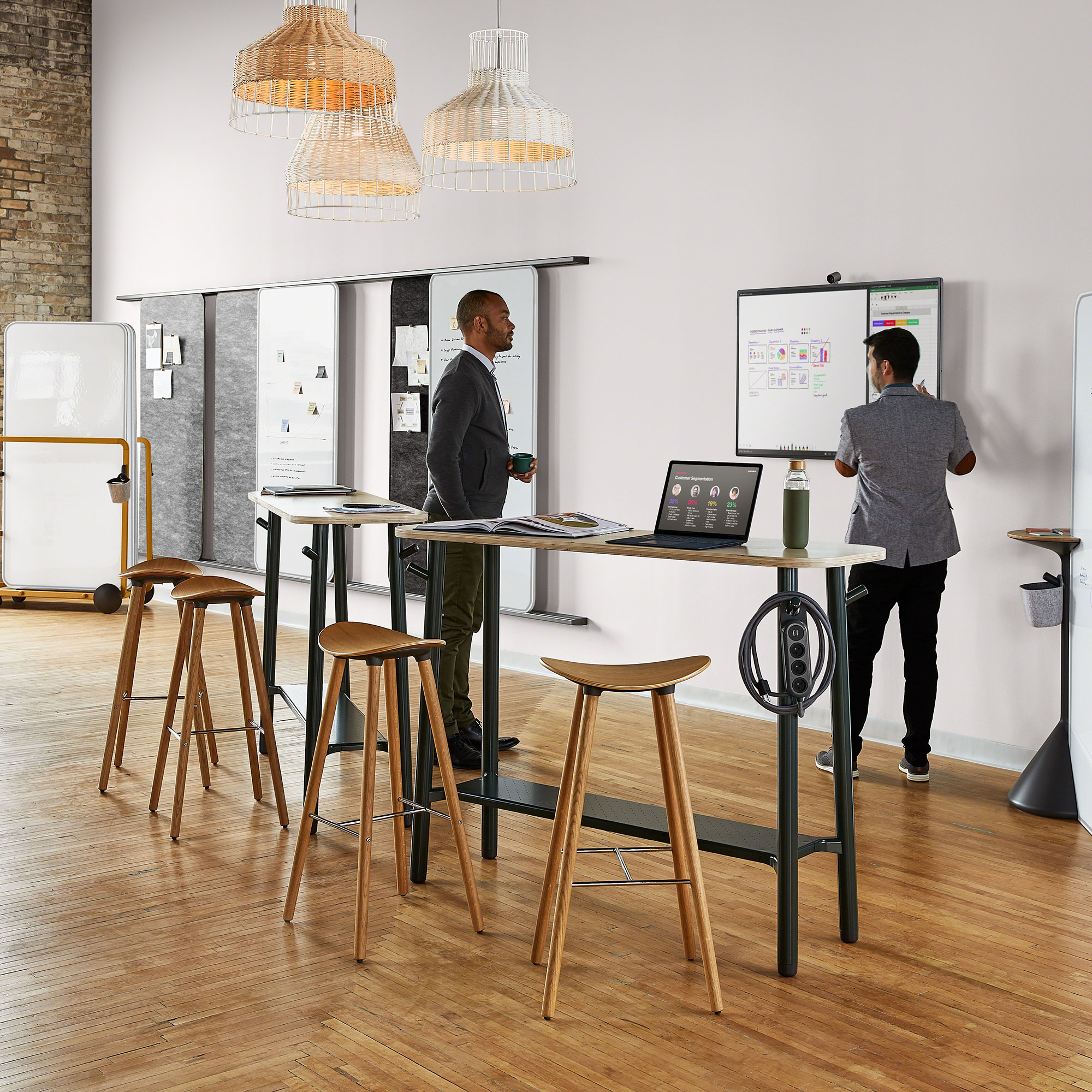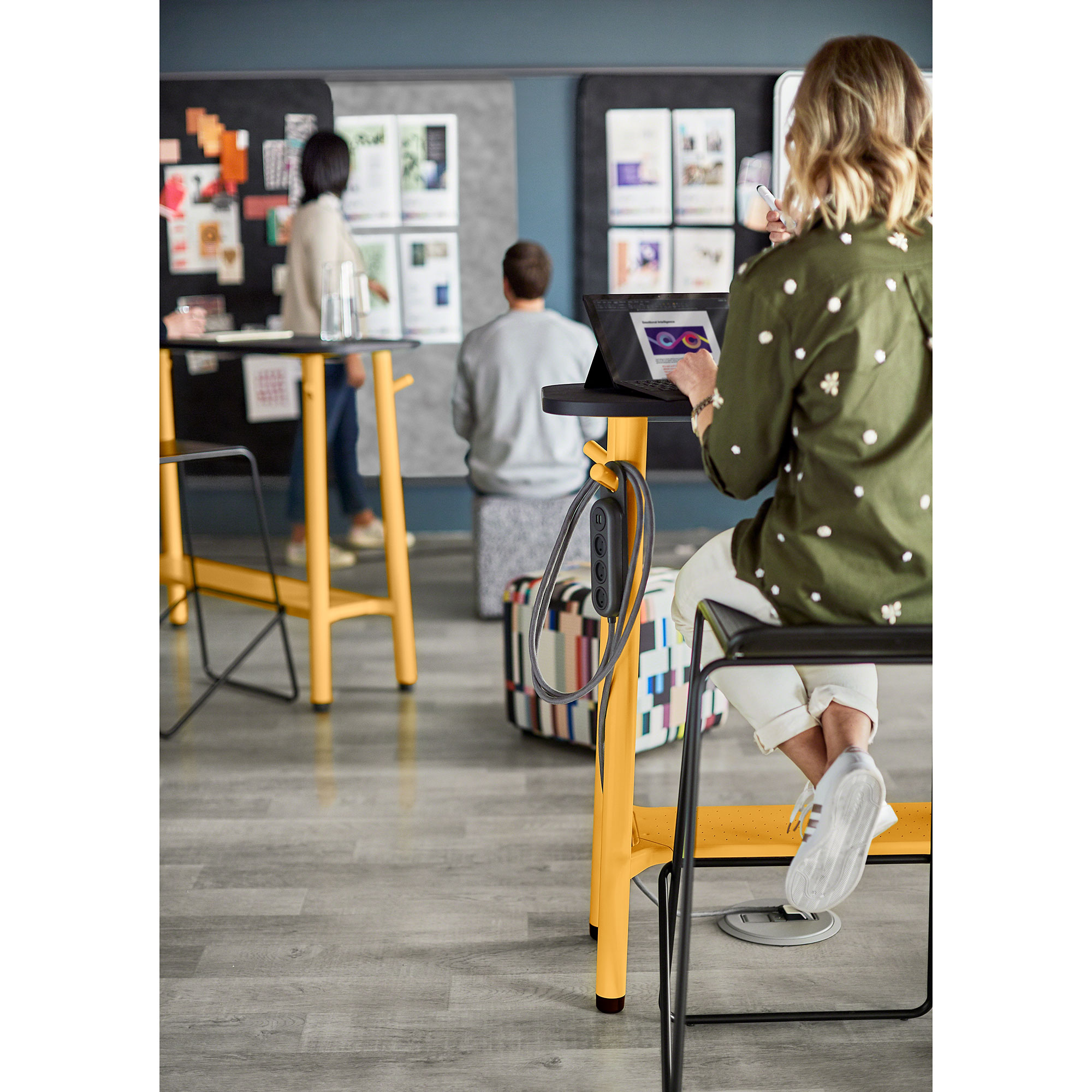 Die neue Steelcase Flex Collection sorgt für mehr Dynamik im Büro. Alle Elemente lassen sich beliebig zu einem neuen Arbeitsszenario kombinieren. Arbeiten Sie an Schreib- und Stehtischen auf Rollen, nutzen Sie die Designer-Akustikelemente zur akustischen und optischen Abschirmung Ihrer Besprechung oder die rollbaren Whiteboards für spontane Mindmaps. Der Flex Collection Stehtisch mit Rollen lässt sich auch schnell und einfach an einen neuen Ort schieben, um in Ruhe E-Mails bearbeiten zu können. Mit der Flex Collection von Steelcase sind den Kombinationsmöglichkeiten keine Grenzen gesetzt. Der Stehtisch lässt sich optimal mit Ablagekörben zum Aufhängen oder hinstellen kombinieren. Ist Ihr Laptop am Stehtisch ohne Strom? Die mobilen Flex Collection Strompulte sorgen für die nötige Versorgung an jedem Ort mit ausreichen langen Stromkabeln. Die Ablagefläche unter dem Tisch kann wahlweise zum Abstellen der Füße oder als weiterer Stauraum genutzt werden.