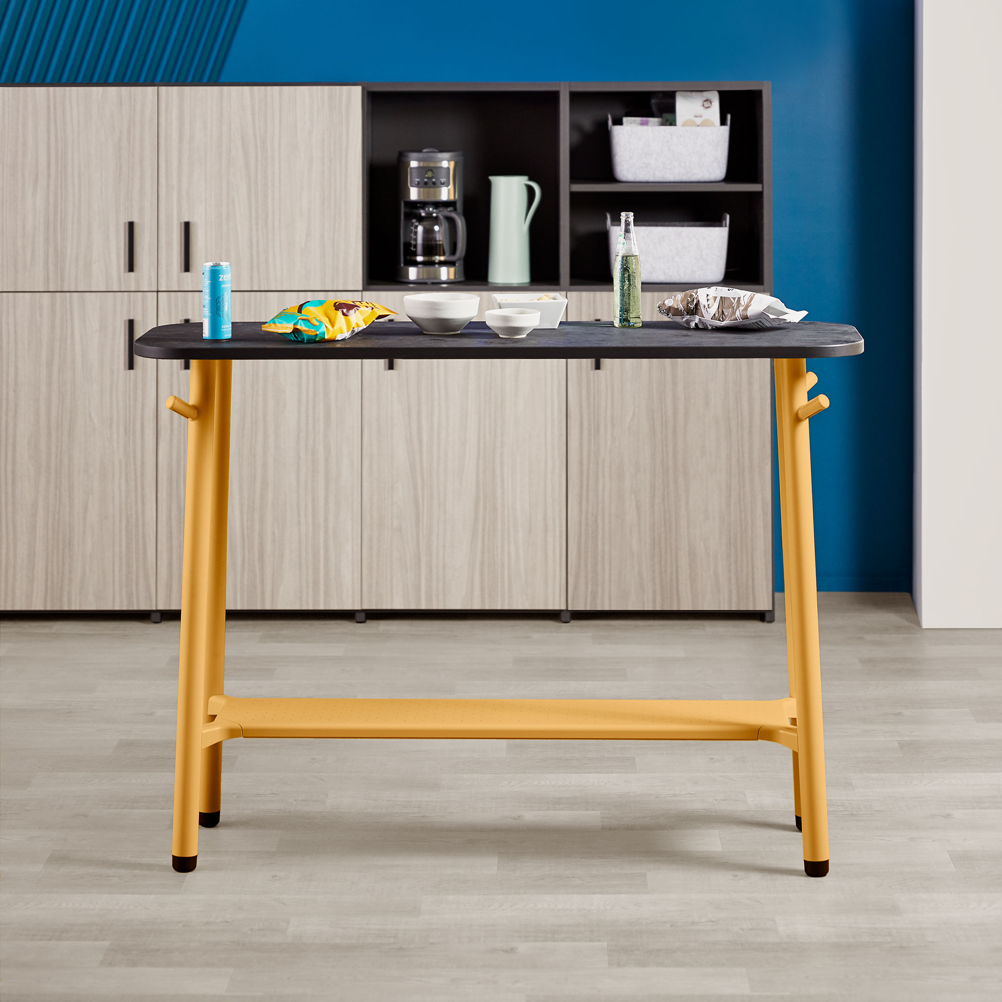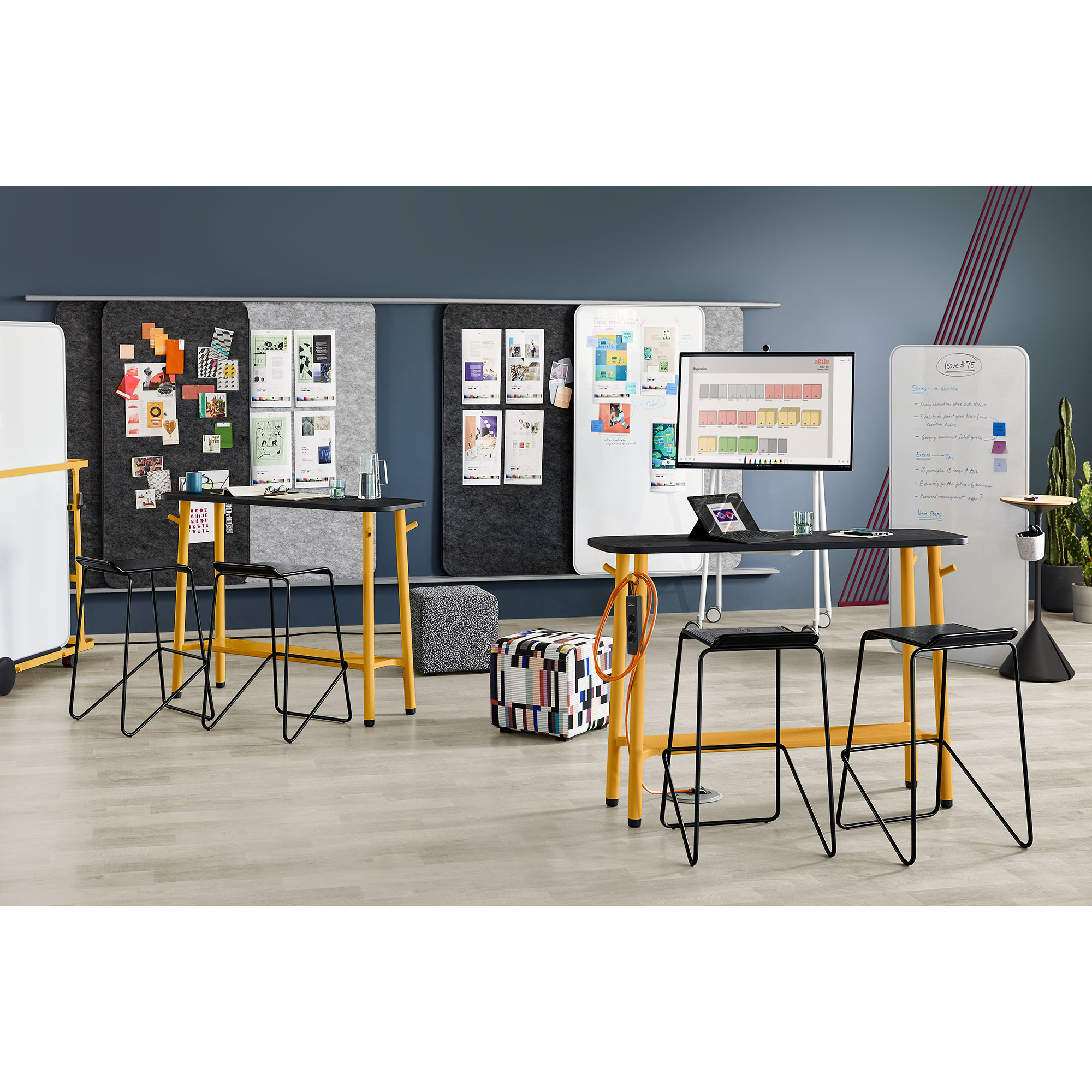 Die neue Steelcase Flex Collection sorgt für mehr Dynamik im Büro. Alle Elemente lassen sich beliebig zu einem neuen Arbeitsszenario kombinieren. Schreibtische mit geringem Gewicht und Rollen, stylische Ablagekörbe und mobile Stromversorgung sorgen für ein angenehmes Arbeiten in agilen Teams. Nutzen Sie die rollbaren Whiteboards für spontane Mindmaps oder stellen Sie sich gemütlich an den Flex Collection Stehtisch Slim. Der Stehtisch lässt sich selbstverständlich individuell konfigurieren und mit vielerlei Gimmicks ausstatten. Personalisieren Sie noch heute Ihre Teammeetings. Ausstattung Tragbarer Tisch der Flex Collection Extra schmal für angenehme Besprechungen Platte wahlweise auf Melamin oder Echtholz (furnierbeschichtete 3-Schicht Güte-Feinspanplatte) in diversen Dekoren (beispielsweise Ahorn, Buche, Snow white, Walnuss, Wenge oder klassisch schwarz) Modernes, filigranes Gestell mit Haken für Zubehörkörbchen, Jacken oder Taschen, auch das Gestell lässt sich individuell farblich pulverbeschichten Moderne Fußstütze für entspannte Haltungen beim Stehen oder Sitzen auf Barhockern Breite: 1600 mm Tiefe: 450 mm Höhe: 1050 mm Der schmale Stehtisch lässt sich optimal mit weiteren Produkten der Flex Collection kombinieren. Diese finden Sie direkt unten.