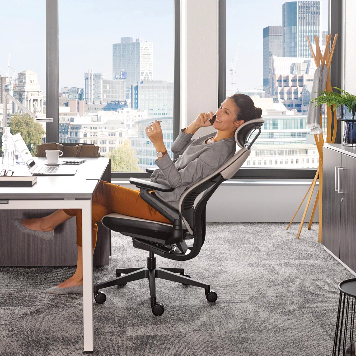 Ein weiteres Argument für einen neuen Steelcase GESTURE am Arbeitsplatz oder im Home Office: Die Kopfstütze aus einer anderen Welt! Höhenverstellbare Kopfstützen kann jeder. Die futuristische Kopfstütze des Steelcase GESTURE überzeugt jedoch bereits beim Anblick - optisch elegant getrennt von Sitz und Rücken lädt sie zum Ausprobieren ein. Einmal richtig eingestellt verbleibt sie jederzeit an der gewünschten Position - wahlweise fest im Nacken bei jeder Position, als leichte Stütze am Hinterkopf oder zum Ablegen des Kopfes beim Nachdenken. Verstellbar in der Höhe und Tiefe sowie in der Neigung - für jede Körperhaltung stets perfekt. Noch nicht überzeugt? Probieren Sie sie doch einfach aus.