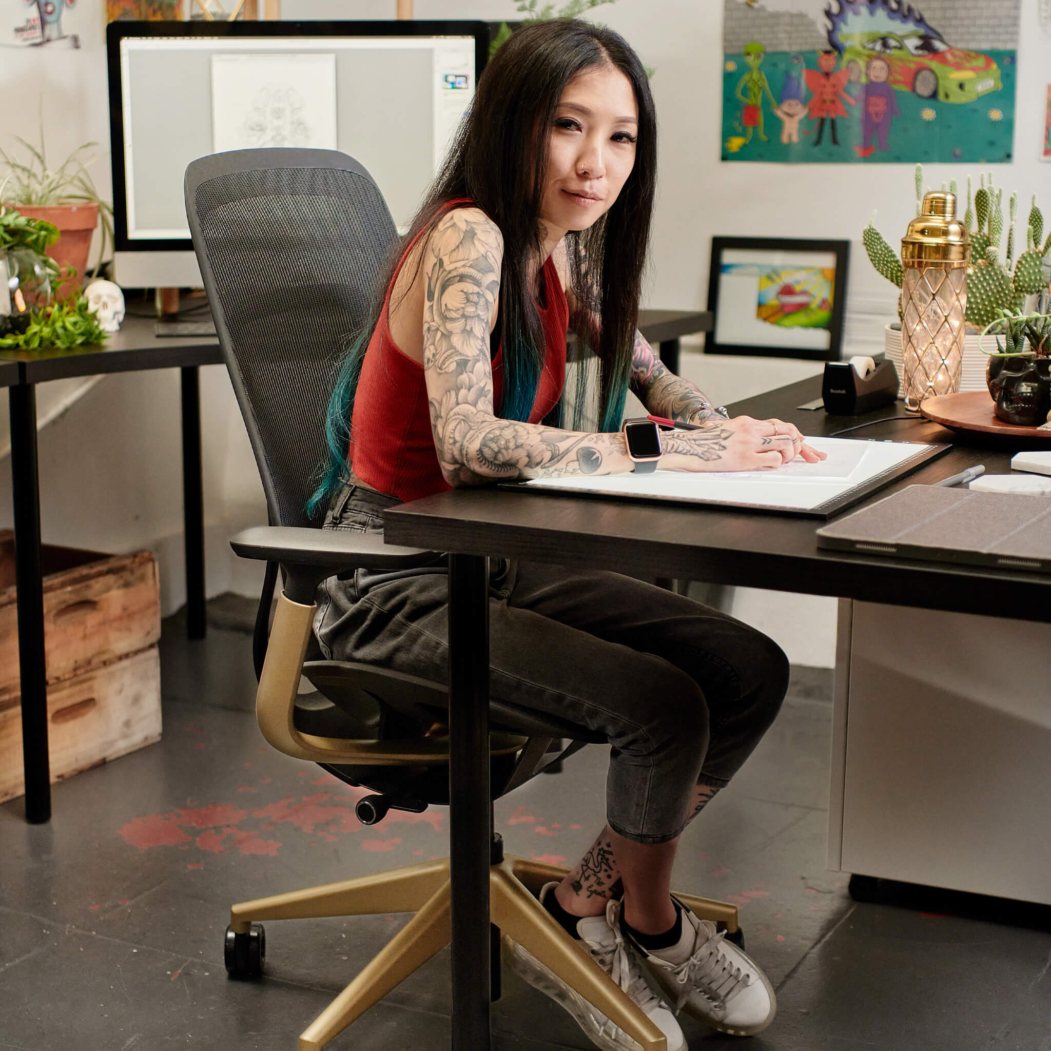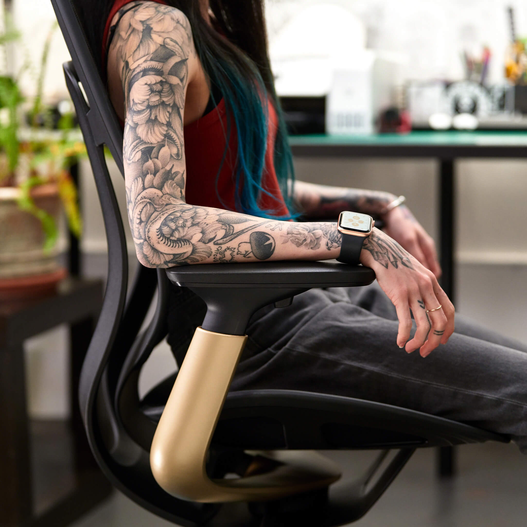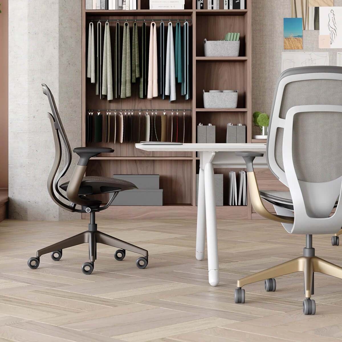 Steelcase Karman ist ein echter Allrounder. Die Intermix-Bezugsstoffe sind in vielen modernen Farben erhältlich. Gleichzeitig lässt sich der gesamte Stuhl farblich passend zur Inneneinrichtung gestalten - von klassischen Schwarztönen über Ausführungen in Möwengrau bis hin zu hochwertigen Lux-Beschichtungen für den Rückenlehnenrahmen, die Armlehnenhalterungen und das Fußkreuz. Der Arbeitsstuhl Steelcase Karman lässt sich in unserem 3D-Konfigurator schnell und intuitiv gestalten und auf Wunsch in Augmented Reality direkt im Raum platzieren.