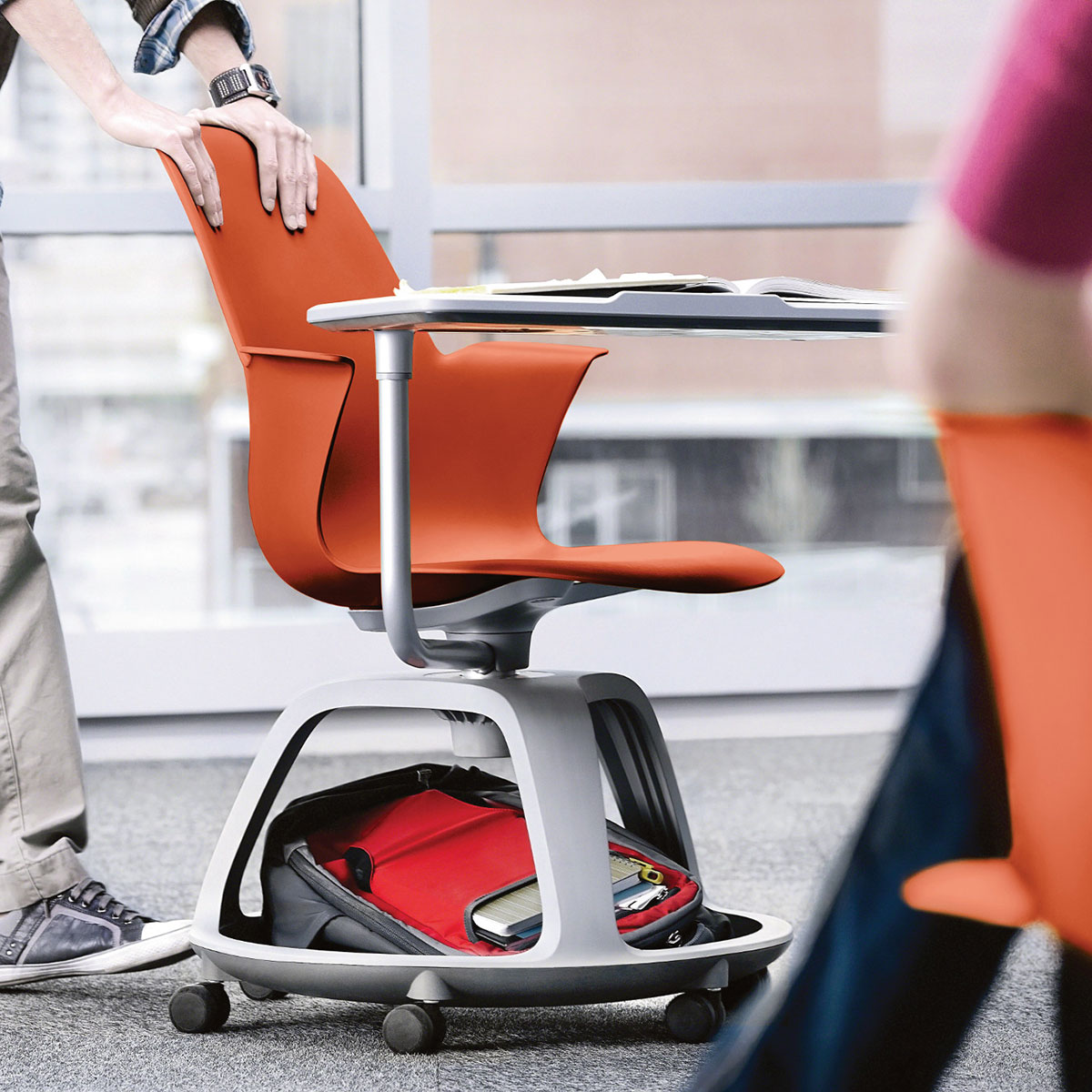 Produktinformationen "Steelcase NODE Seminarstuhl mit Schreibtablar Aktionsmodell Orange"