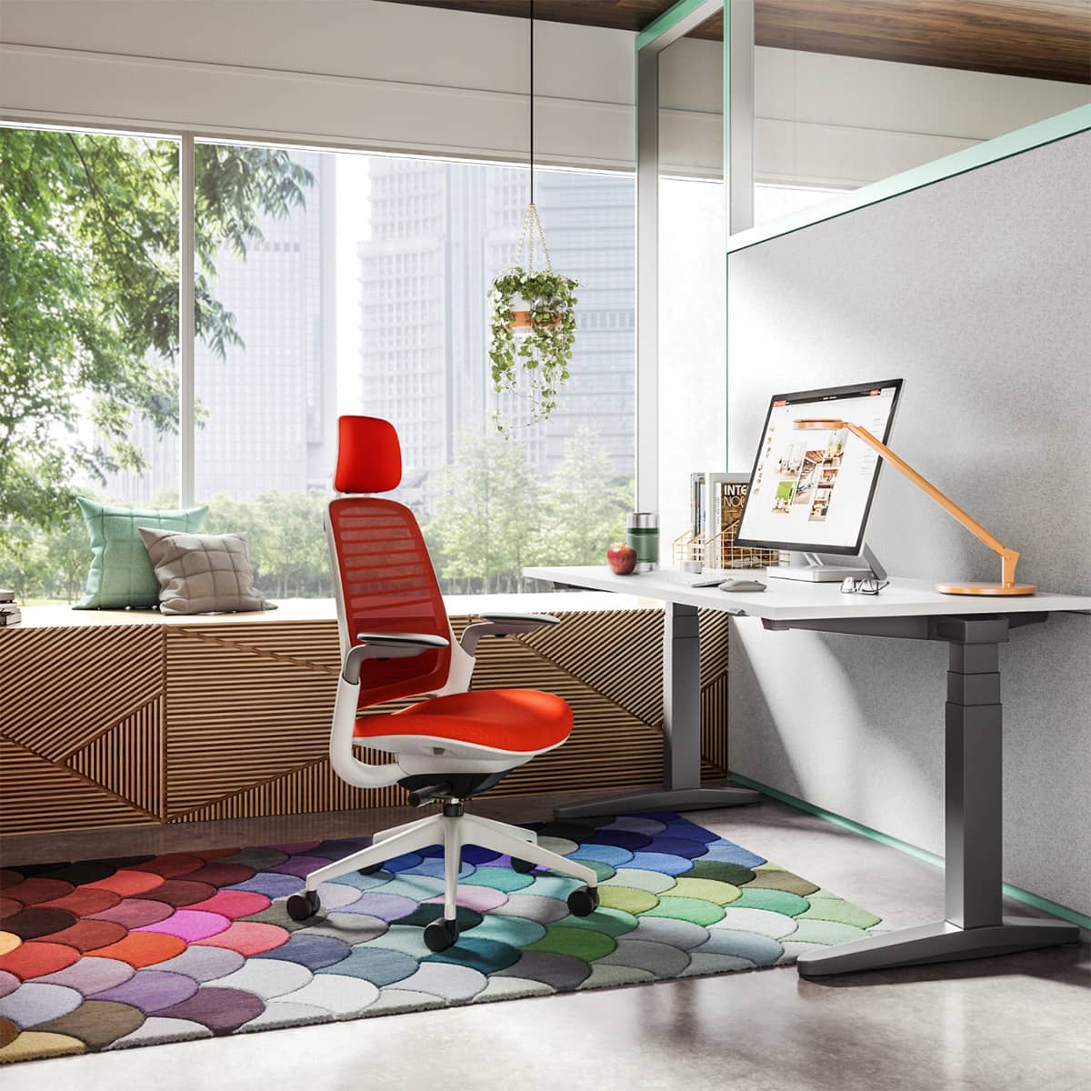 Mit dem ergonomischen Bürostuhl Amia bietet Steelcase einen echten Allrounder. Die angenehme Sitztiefenfederung, höhenverstellbare Lordosenstütze und optionale 4D-Armlehnen kombiniert mit einem Sitzgefühl der Premium-Klasse sorgen für einen stressfreien Arbeitstag. Amia ist natürlich auch perfekt als Gamingstuhl oder für das Home Office geeignet.Unser 3D-Konfigurator ermöglicht die spielend leichte Konfiguration des perfekten Drehstuhls. Alle Bezüge und Farben zur Auswahl - von Polyesterstoffen über Wolle bis hin zu echtem Premium-Leder. Erschaffe noch heute dein Steelcase AMIA Unikat und lasse es dir aufgebaut direkt nach Hause liefern. Ausstattungsmerkmale und KonfigurationsoptionenAuswahl zwischen 2D- und 4D-Armlehnen (höhenverstellbar vs. winkel-, tiefen-, breiten- und höhenverstellbar)Softex-Polsterung gegen AufpreisIm Standard bereits mit Sitztiefenfederung, Synchronmechanik für ein optimales Sitzgefühl, einer Sitzhöhen- und Tiefenverstellung sowie der Härteverstellung für den Gegendruck der Rückenlehne ausgestattetDie Rückenlehne lässt sich in vorderster Positionen arretieren (feststellen)Verstellbarkeit der Sitztiefe: 76 mmLumbalstütze lässt sich um 96 mm in der Höhe über zwei beidseitige Griffe verstellenVerstellbereich des Härtegrades der Rückenlehne: Von 45 bis 120 kgFußgestell aus Polyamid-Spritzguss mit Glasfaservstärkung, wahlweise auch aus AluminiumgussVerschiedene Bezugsstoffe und Farben zur Auswahl, auf Anfrage senden wir gerne Stoffmuster per PostAbmessungen des Steelcase Amia BürodrehstuhlsGesamthöhe: 990 mmGesamtbreite mit Armlehnen: 680 mmGesamttiefe: 565 mmDurchmesser: 680 mmGewicht mit Armlehnen: 21,90 kgHöhe der Rückenlehne: 540 mmSitztiefe: 395 - 475 mmSitzhöhe: 410 - 525 mmWeitere Fragen zum Steelcase Amia Arbeitsstuhl? Unser kompetentes Beratungsteam hilft gerne weiter - telefonisch oder per Kontaktformular.