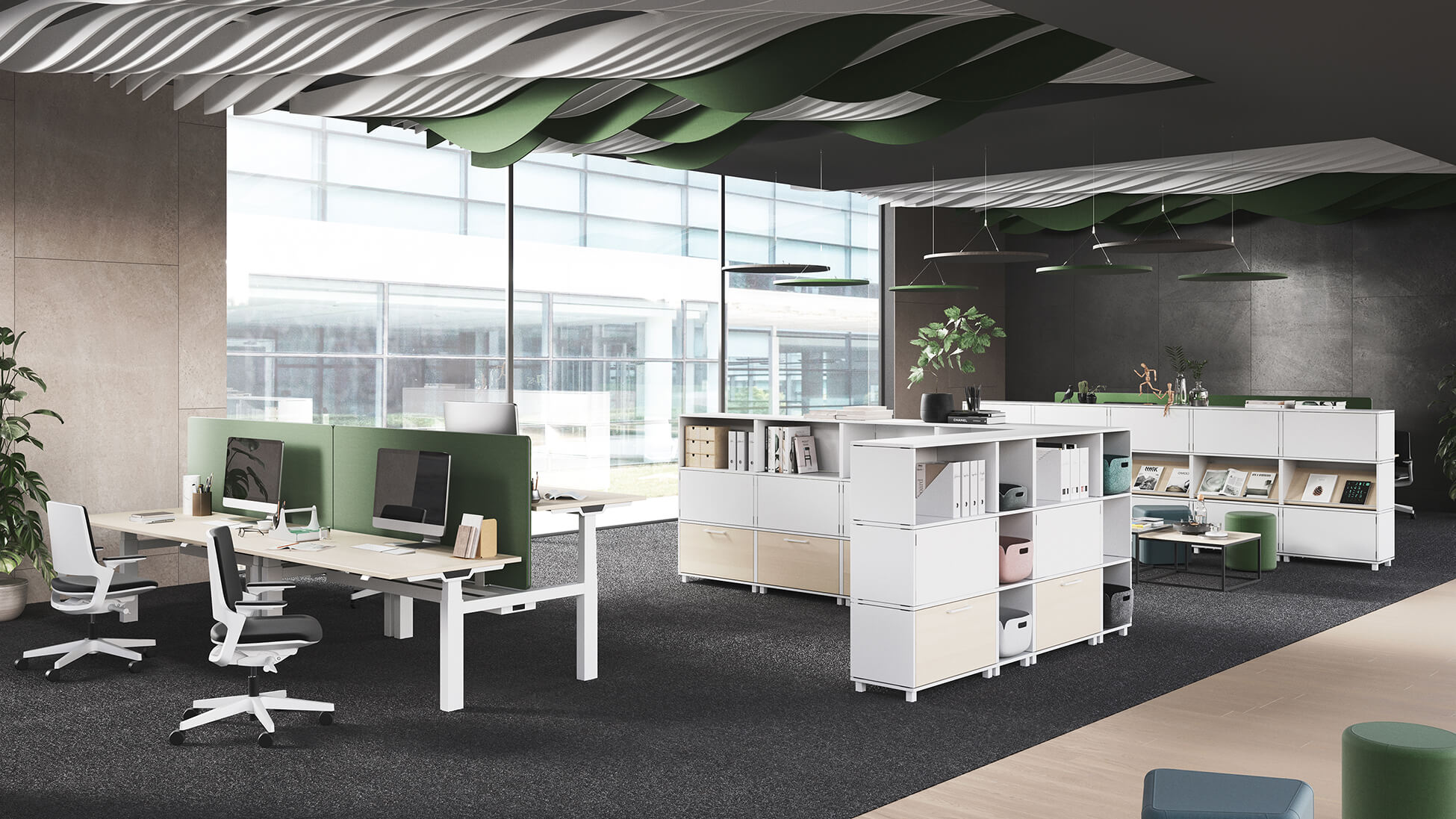 Bei der FLEX COLLECTION sind die flexiblen Einsatzmöglichkeiten von Vorteil. Diese Schreibtische lassen sich im Handumdrehen neu positionieren. Steht ein Meeting an, die Schreibtische einfach zusammenschieben und anschließend zurückbringen und problemlos wieder wie zuvor als Einzelarbeitsplatz nutzen. Weil sich die Büromöbel dem Bedarf anpassen, sparen sich Unternehmen zusätzliche Räumlichkeiten und Mobiliar, welches nur gelegentlich genutzt wird. Tische aus der FLEX COLLECTION sind wie andere ebenso höhenverstellbar, lassen sich mit weiteren Anbauelementen individualisieren und sind zusätzlich mit Rollen ausgestattet. Neben einem integrierten Stromkabel gibt es viele weitere Features. Die Schreibtische lassen sich nach Bedarf mit weiterem Zubehör ausstatten, wie zum Beispiel mit einem Sichtschutz. Dadurch lässt sich ein optimaler Arbeitsplatz gestalten, egal ob im Home Office oder im Büro.